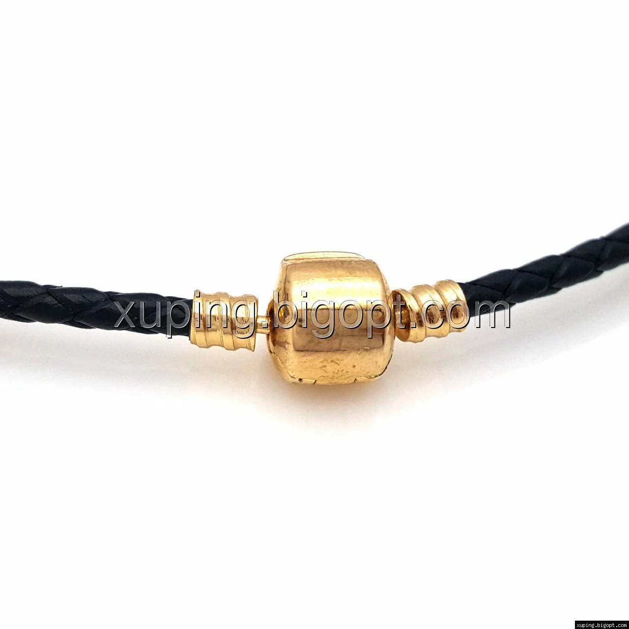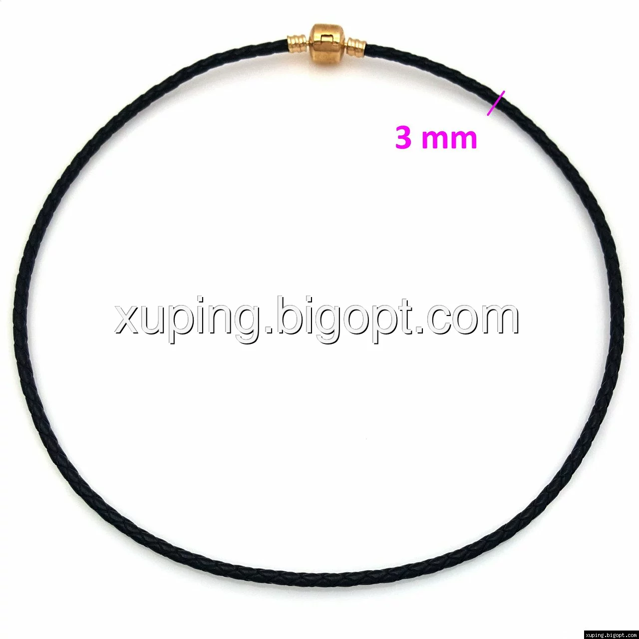 Черный шнурок под плетенную кожу, р.43, позолота Xuping