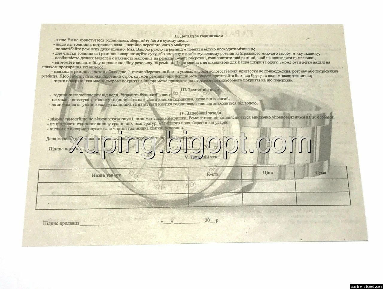 Гарантийный талон просто необходимая вещь для продавцов часов.