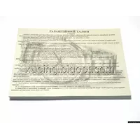 Гарантийные талоны продаются упаковками по 100 шт в каждой. Выполнены на газетной бумаге, текст напечатан на фоновом рисунке, что исключает подделку. Размер 14,5 см * 10,3 см