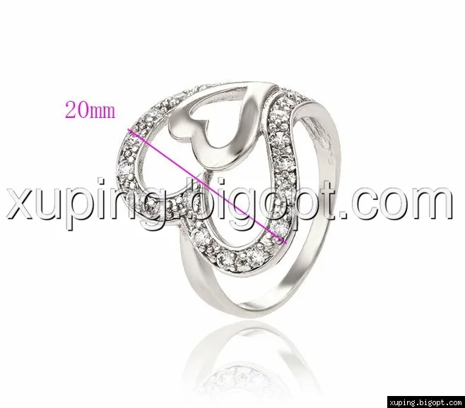 Колечко, Два больших сердца с цирконием, р.17,5, р.18, р, р.18,5, 19,родий