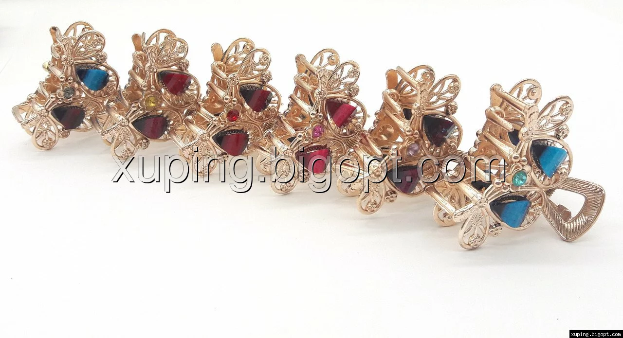 Заколка-краб золотистая, Две бабочки с разноцветными камнями