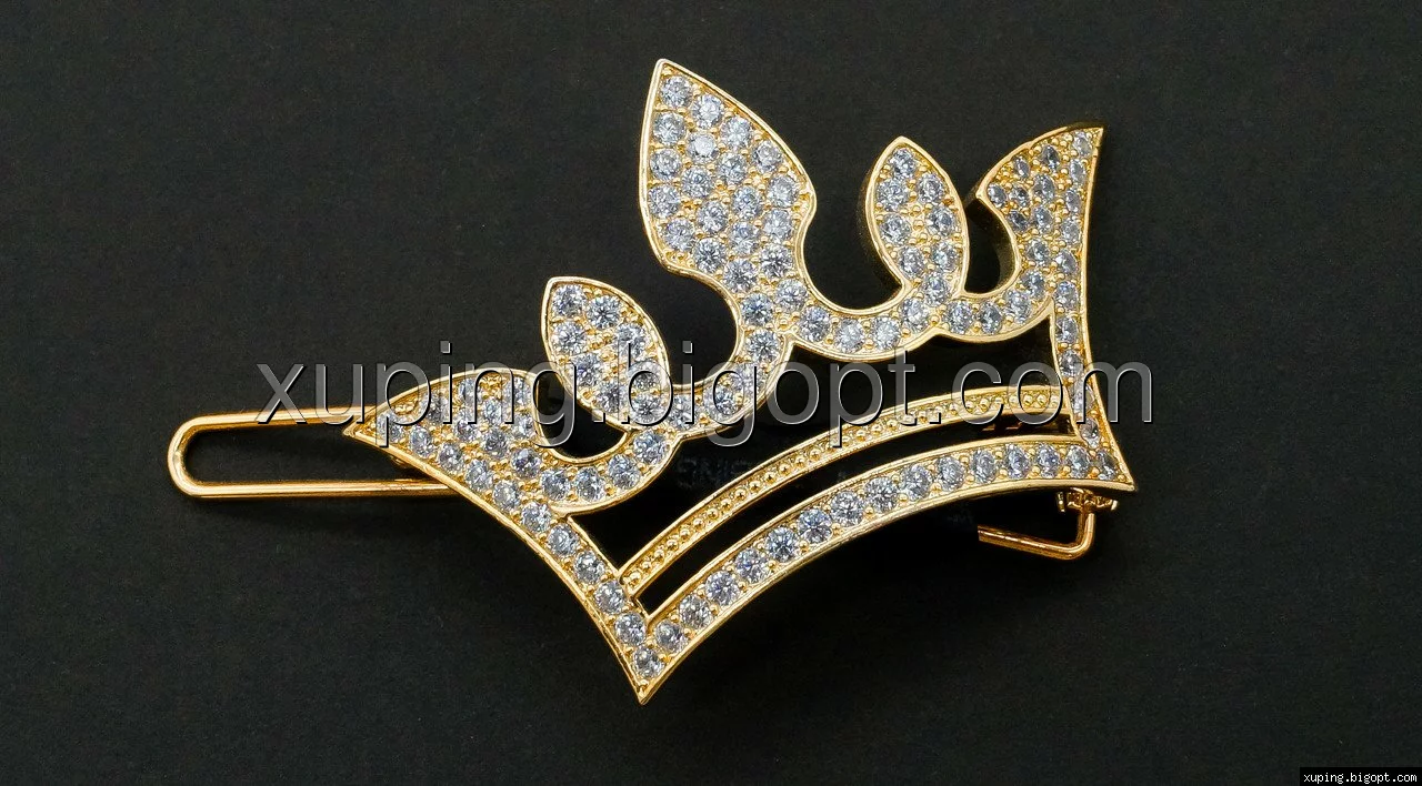 Заколка позолоченная, маленькая Корона с цирконием