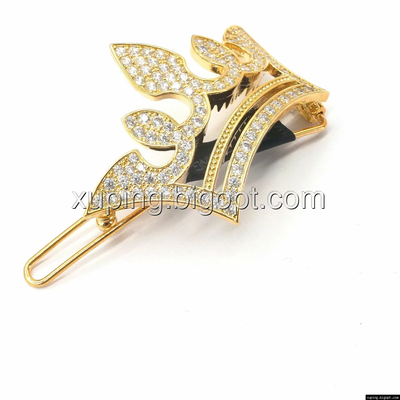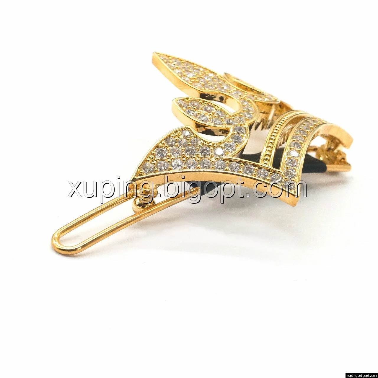 Заколка выполнена из медицинского сплава на основе латуни с добавлением легирующих элементов, с целью улучшения каких-либо его свойств, например коррозионной стойкости или прочности. Такой сплав не вызывает аллергии, не вступает в реакцию с потом человека, не меняет свои свойства под воздействием соленой воды и солнца. Поверхность заколки покрыта золотом 18 карата.