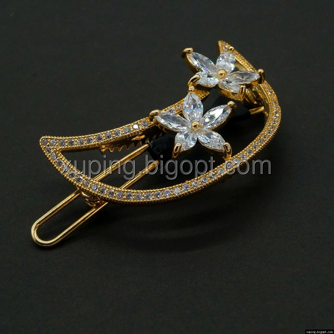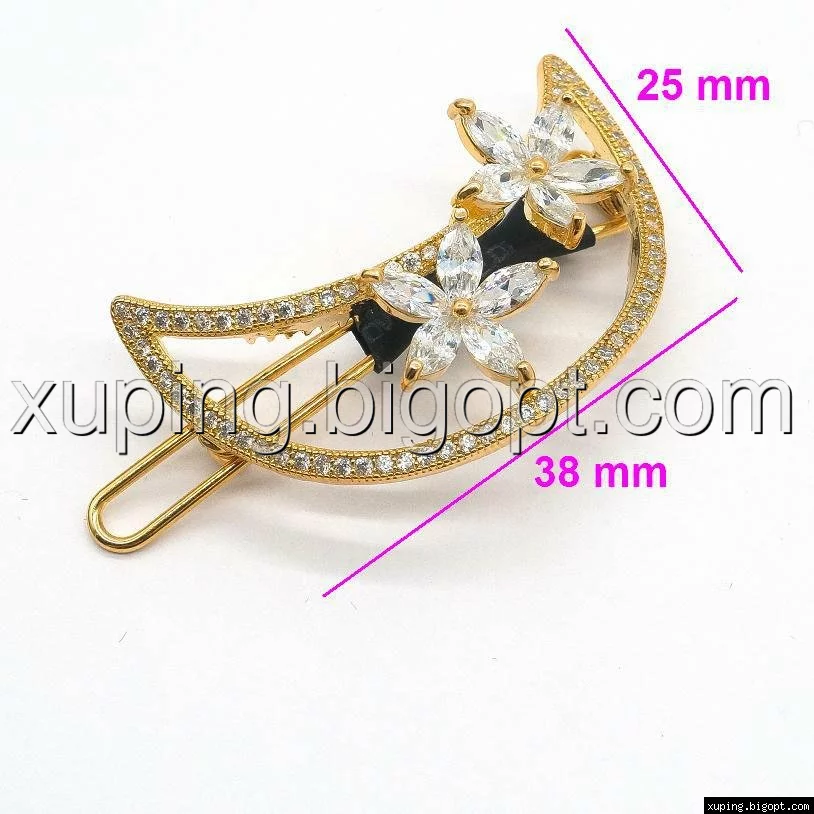 Заколка позолоченная, Месяц и Два Цветка