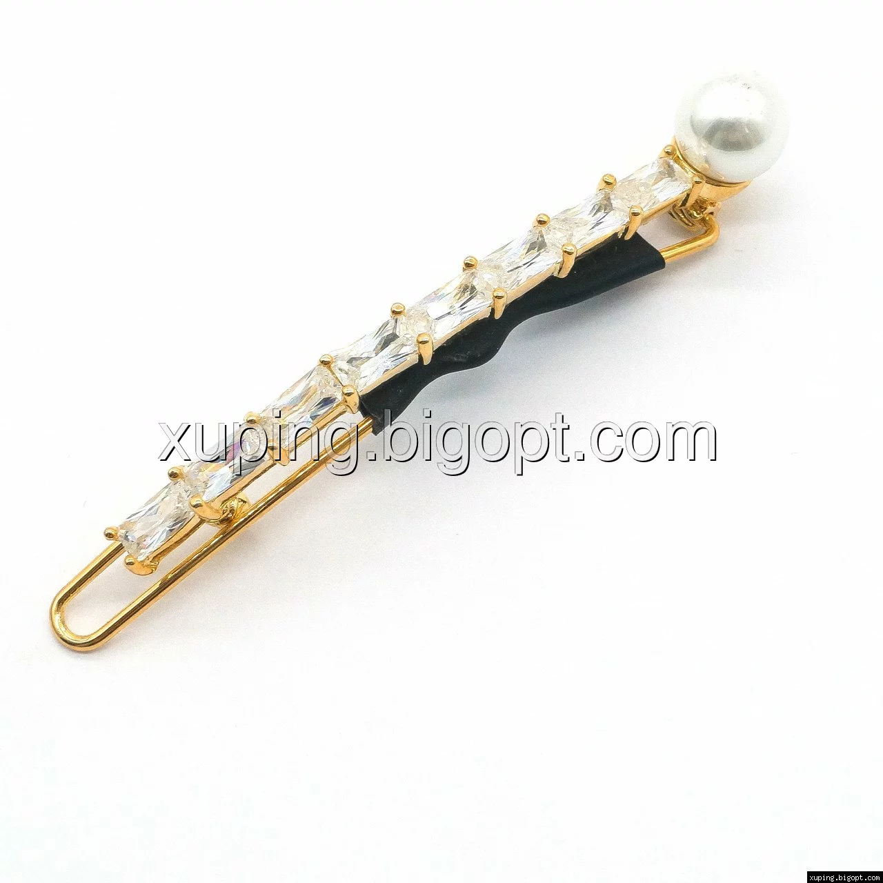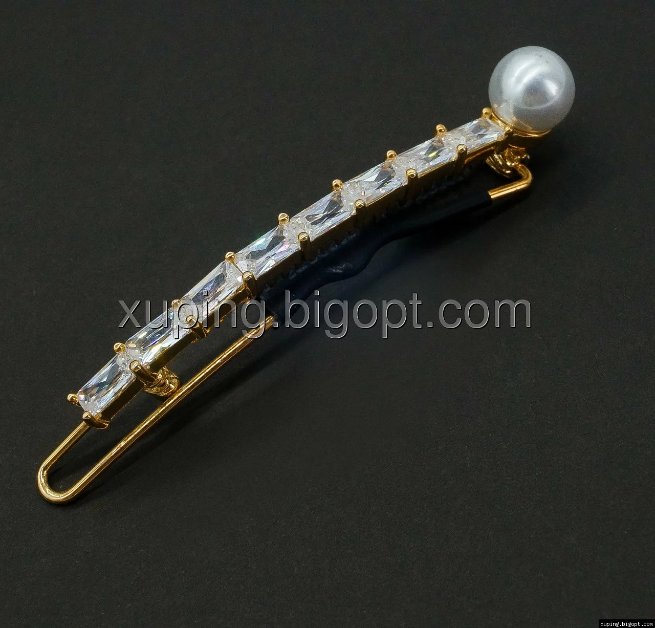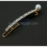 Заколка позолоченная, Дорожка багетного циркония с Жемчужиной