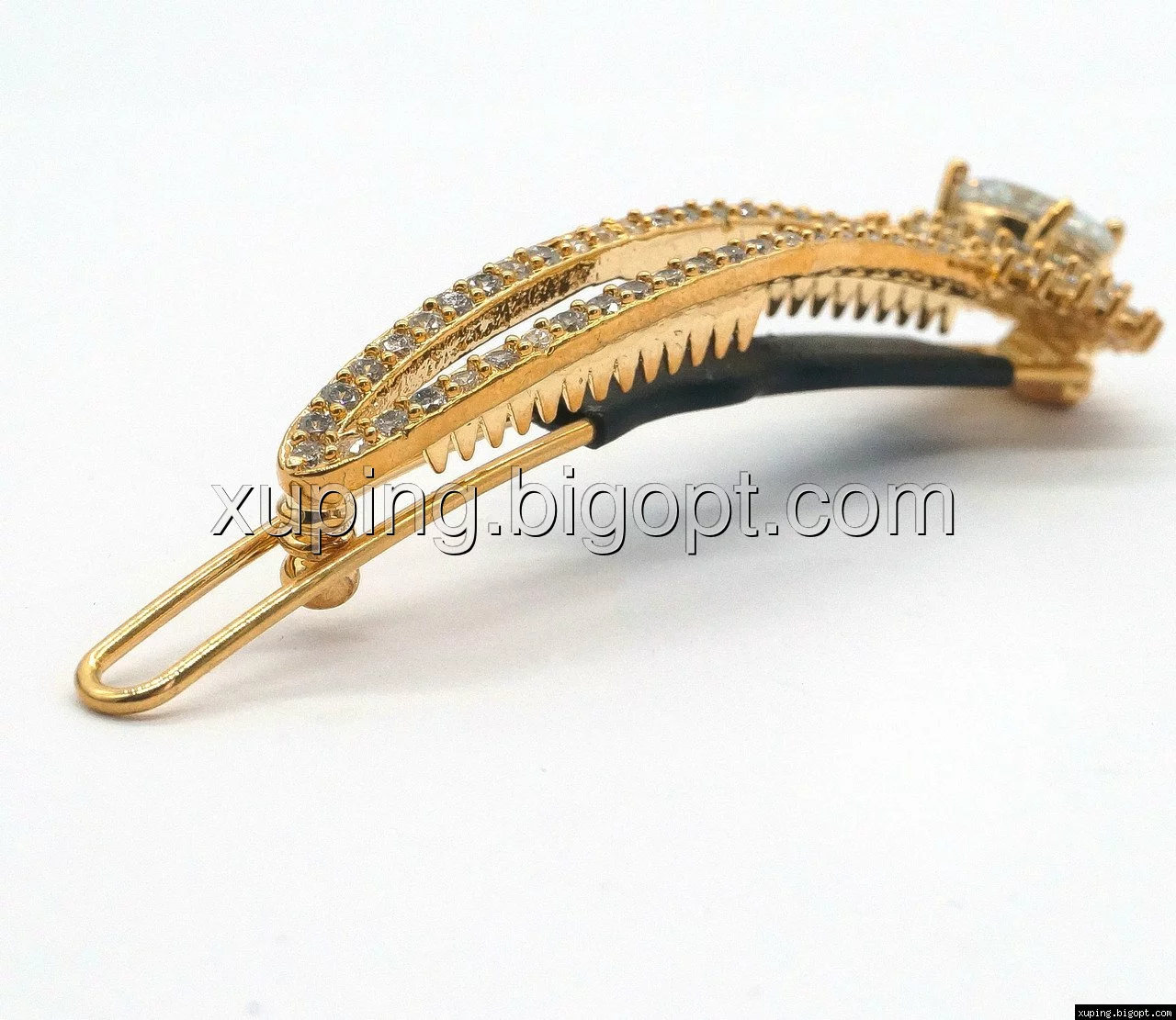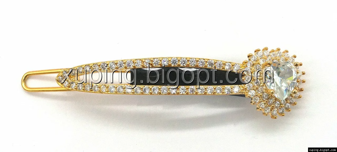 Заколка выполнена из медицинского сплава на основе латуни с добавлением легирующих элементов, с целью улучшения каких-либо его свойств, например коррозионной стойкости или прочности. Такой сплав не вызывает аллергии, не вступает в реакцию с потом человека, не меняет свои свойства под воздействием соленой воды и солнца. Поверхность заколки покрыта золотом 18 карата.