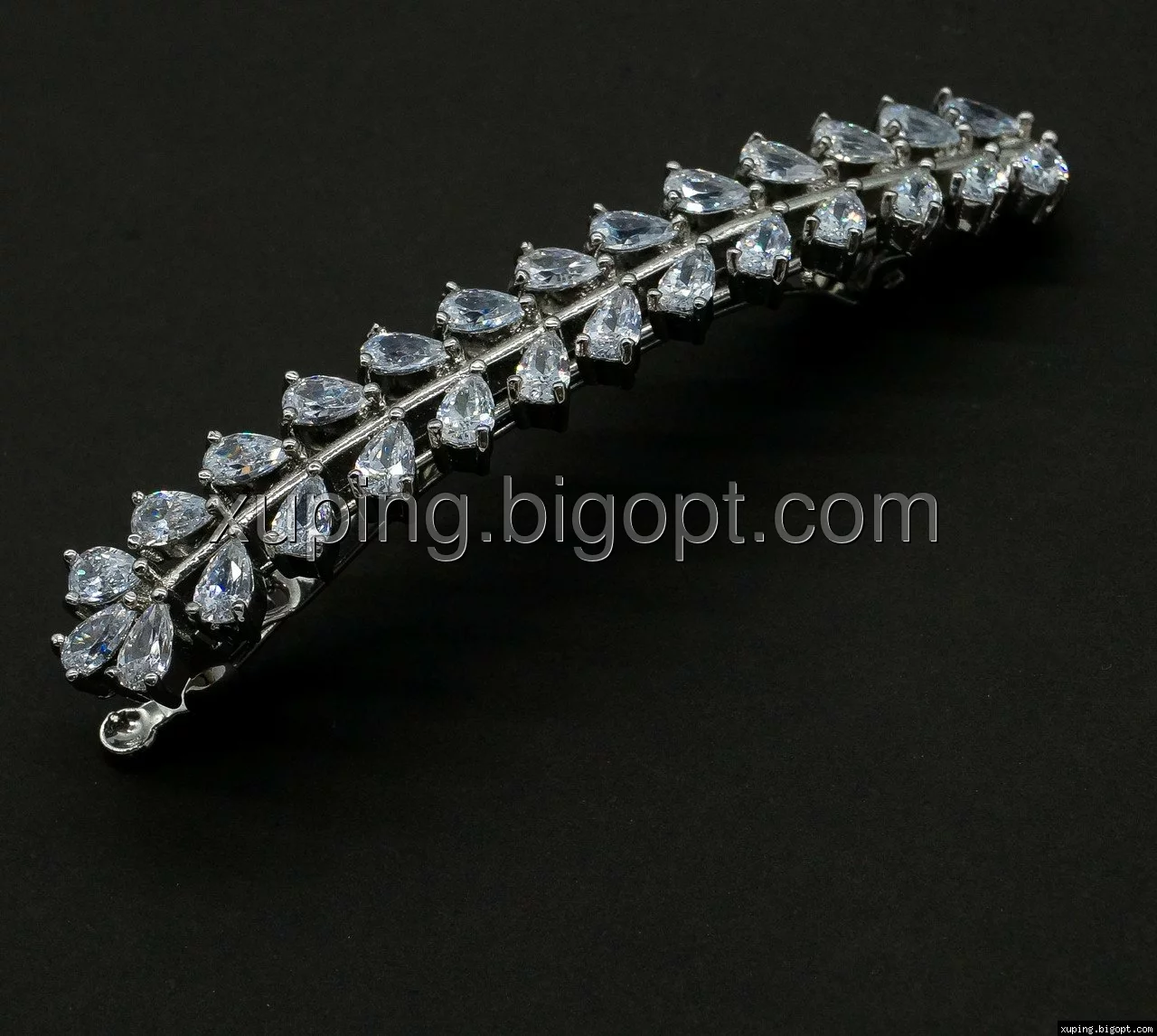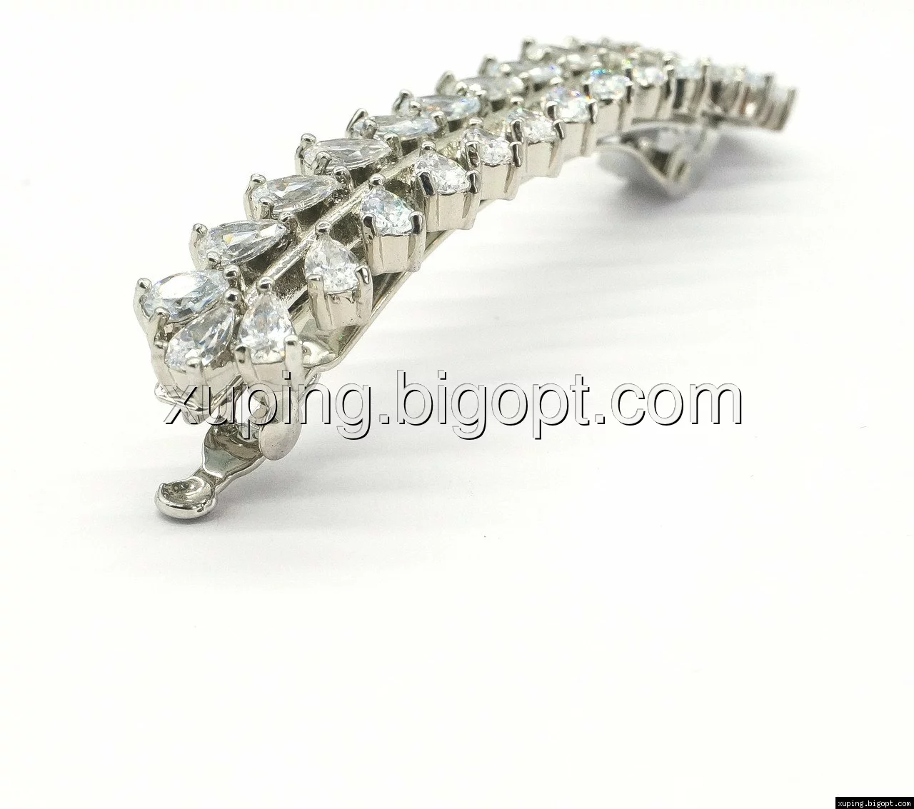 Заколка выполнена из медицинского сплава на основе титана с добавлением легирующих елементов, с целью улучшения каких-либо ее свойств, например коррозионной стойкости или прочности. Такой сплав не вызывает аллергии, не вступает в реакцию с потом человека, не меняет свои свойства под воздействием соленой воды и солнца. Поверхность заколки покрыта родием чтобы придать ей ярко-белый цвет и дополнительно защитить от повреждений .