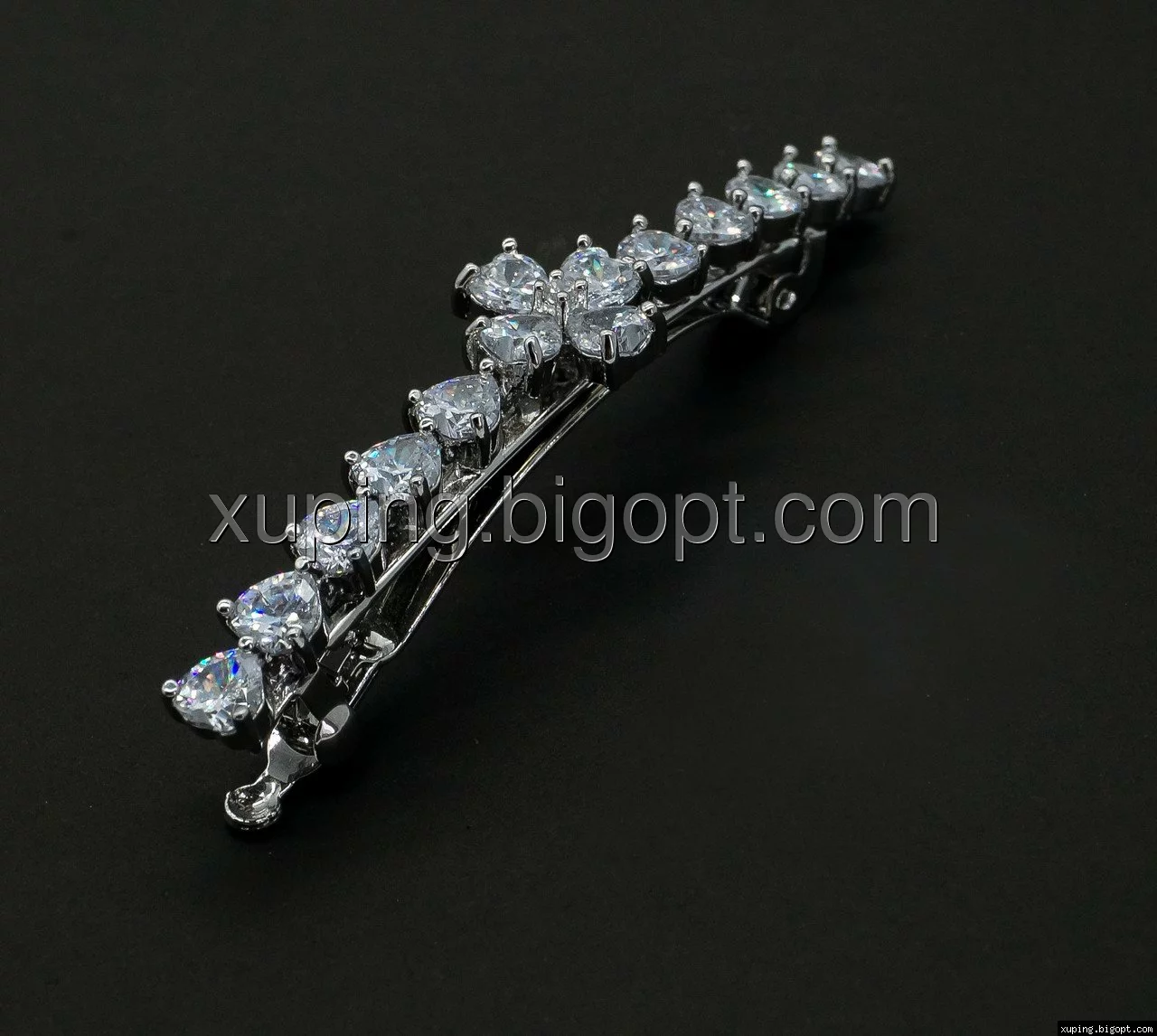 Заколка родированная, Четырехлистник с цирконием