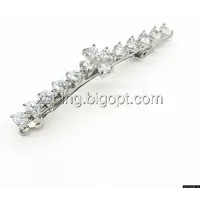 Заколка выполнена из медицинского сплава на основе титана с добавлением легирующих елементов, с целью улучшения каких-либо ее свойств, например коррозионной стойкости или прочности. Такой сплав не вызывает аллергии, не вступает в реакцию с потом человека, не меняет свои свойства под воздействием соленой воды и солнца. Поверхность заколки покрыта родием чтобы придать ей ярко-белый цвет и дополнительно защитить от повреждений .