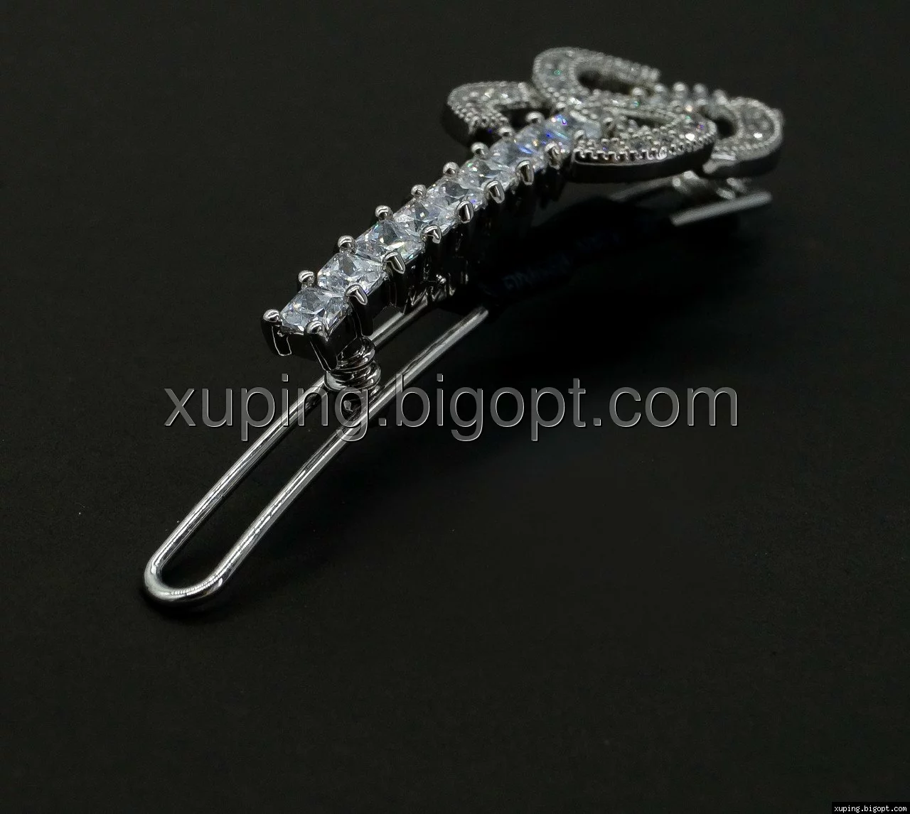 Заколка родированная, классическая с цирконием