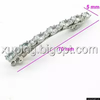 Заколка выполнена из медицинского сплава на основе титана с добавлением легирующих елементов, с целью улучшения каких-либо ее свойств, например коррозионной стойкости или прочности. Такой сплав не вызывает аллергии, не вступает в реакцию с потом человека, не меняет свои свойства под воздействием соленой воды и солнца. Поверхность заколки покрыта родием чтобы придать ей ярко-белый цвет и дополнительно защитить от повреждений .