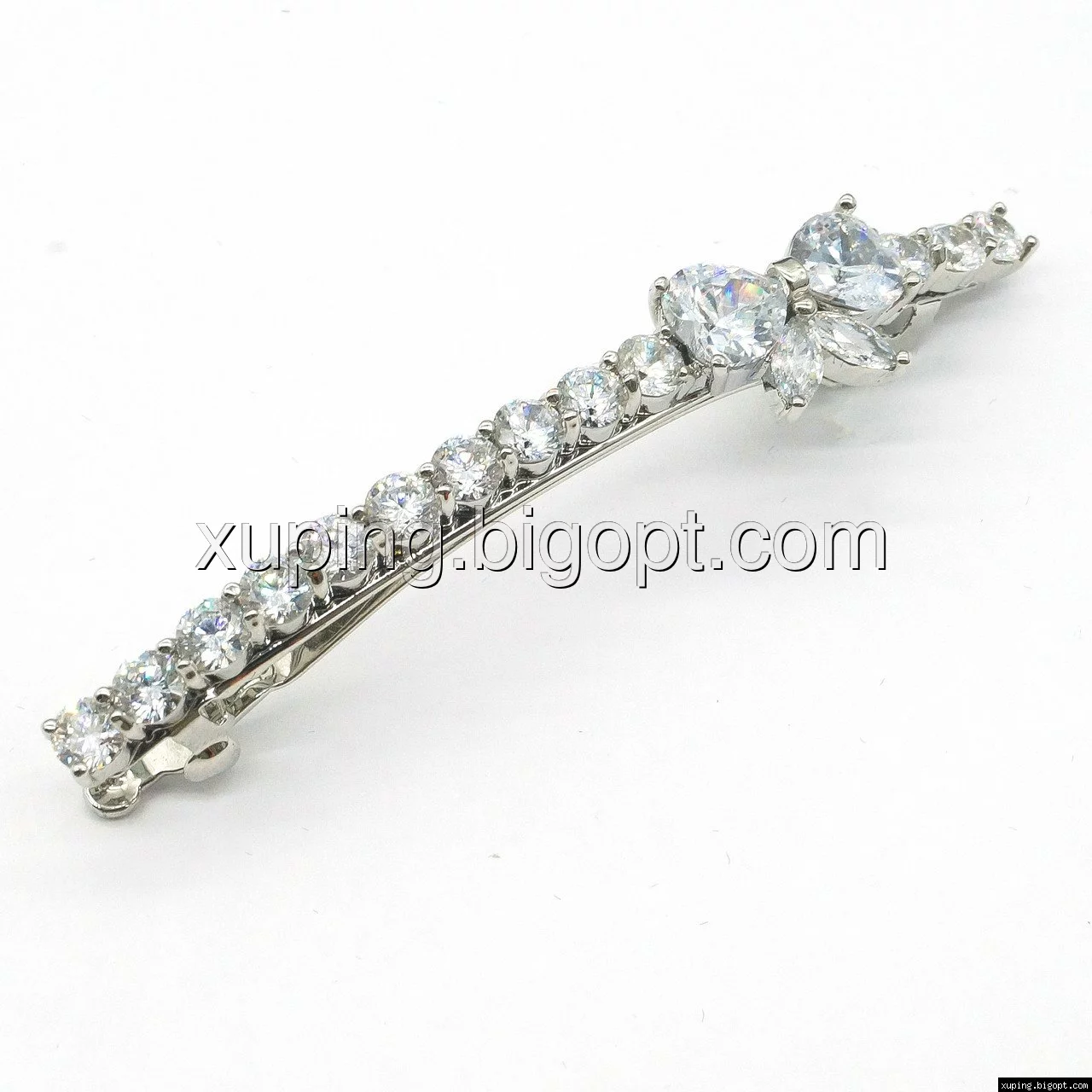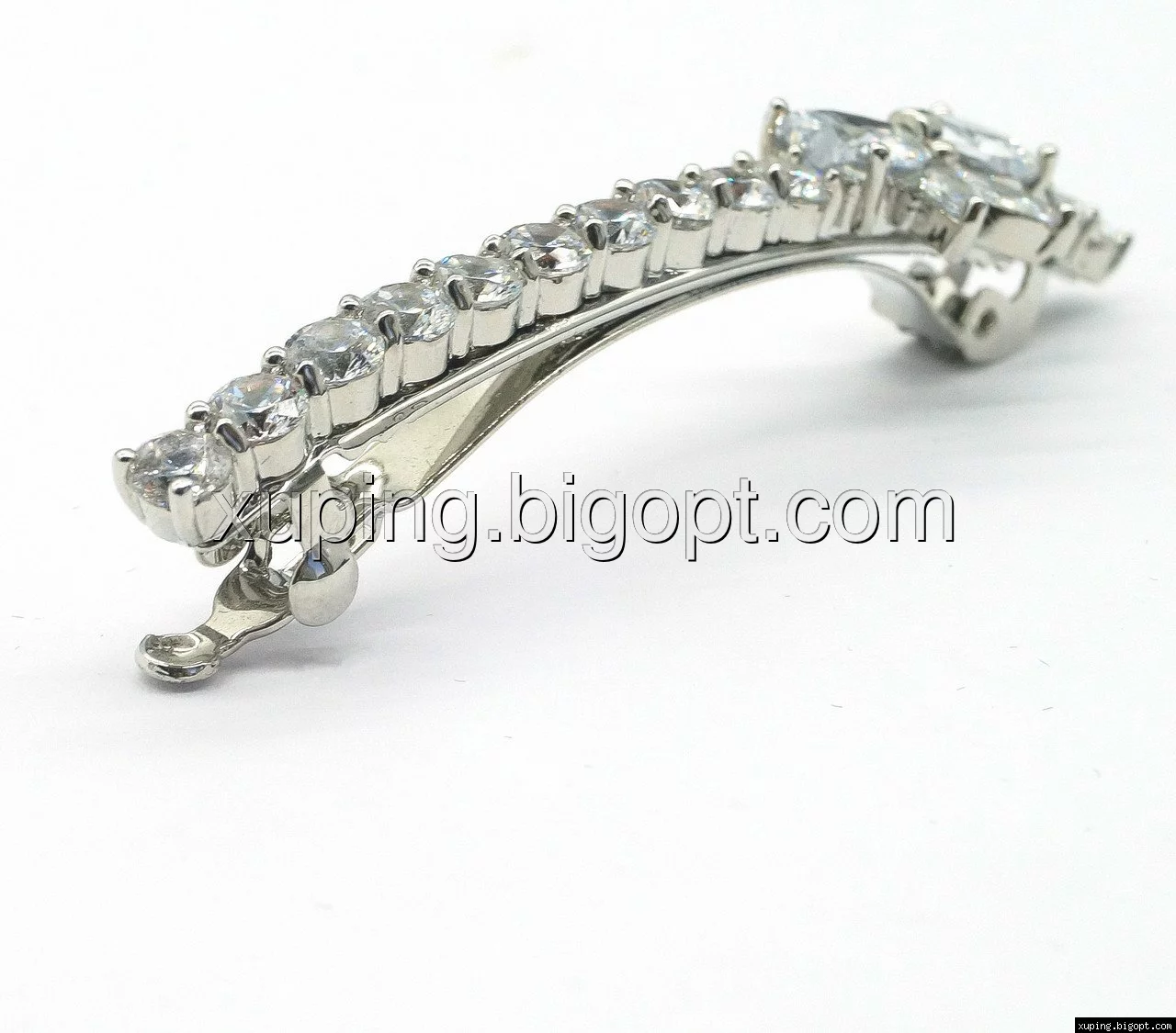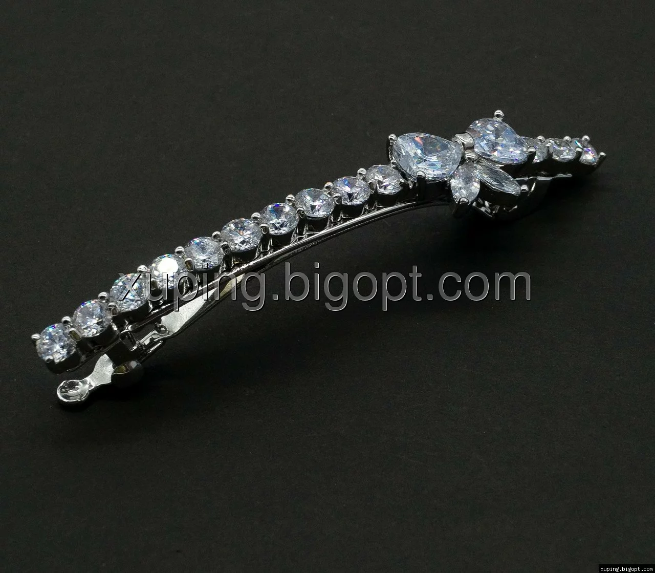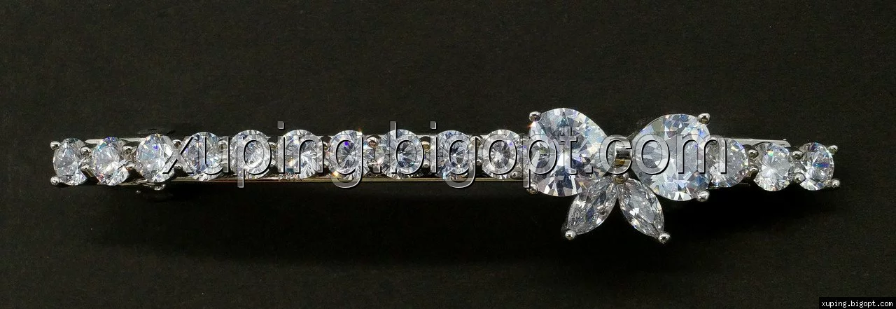 Заколка родированная, Бантик с цирконием