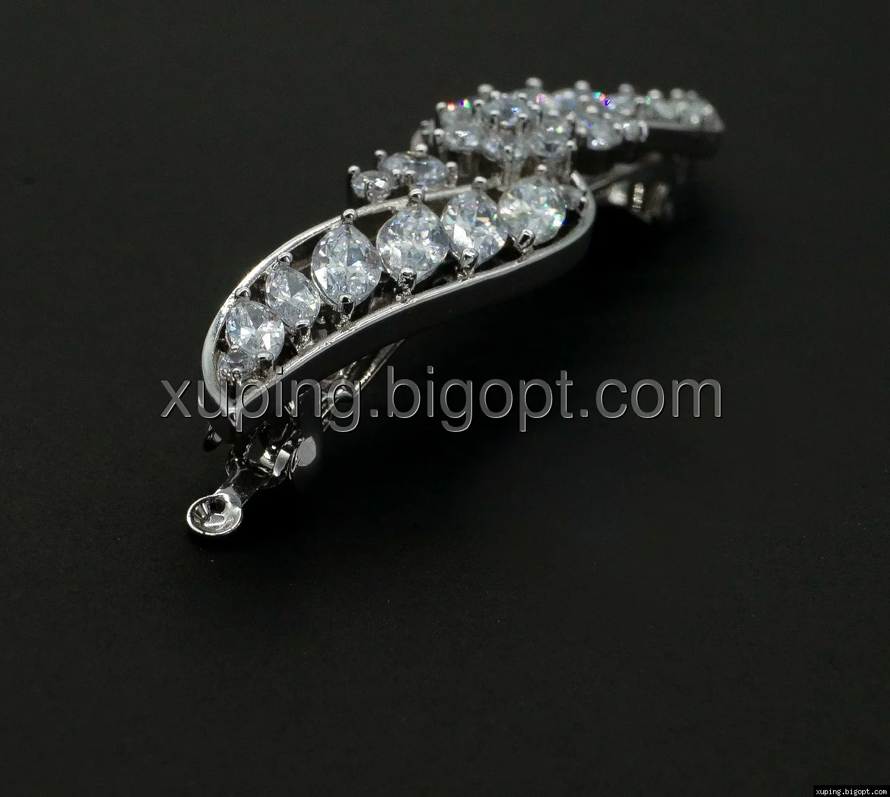 Заколка выполнена из медицинского сплава на основе титана с добавлением легирующих елементов, с целью улучшения каких-либо ее свойств, например коррозионной стойкости или прочности. Такой сплав не вызывает аллергии, не вступает в реакцию с потом человека, не меняет свои свойства под воздействием соленой воды и солнца. Поверхность заколки покрыта родием чтобы придать ей ярко-белый цвет и дополнительно защитить от повреждений .