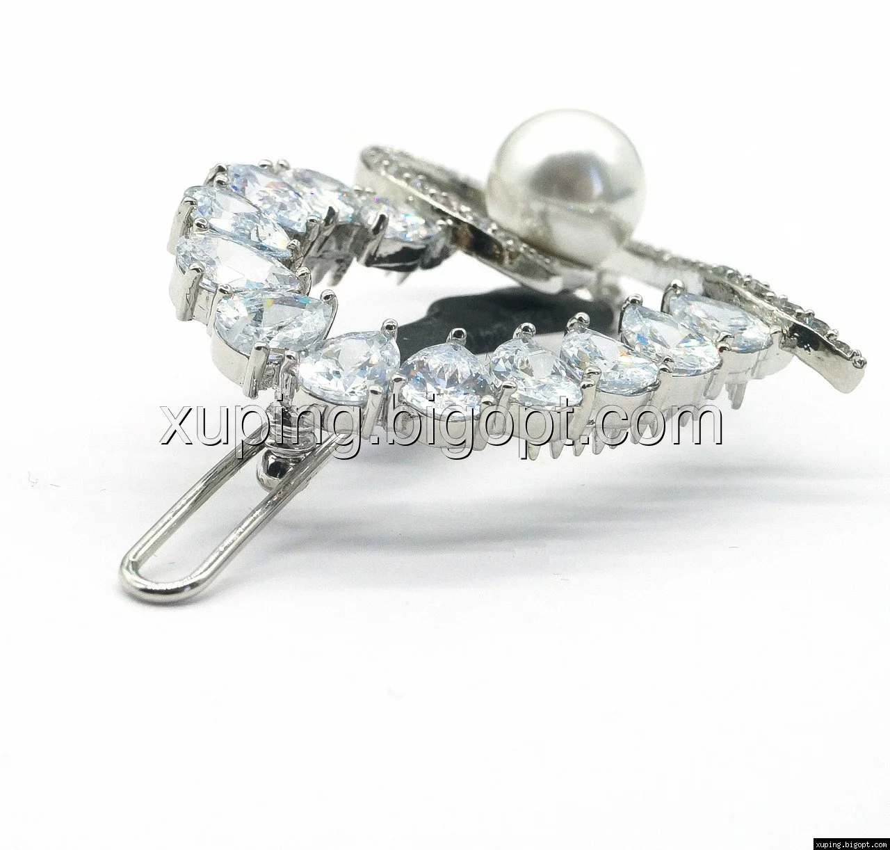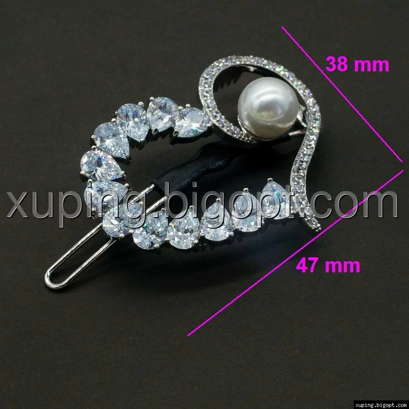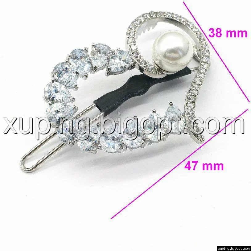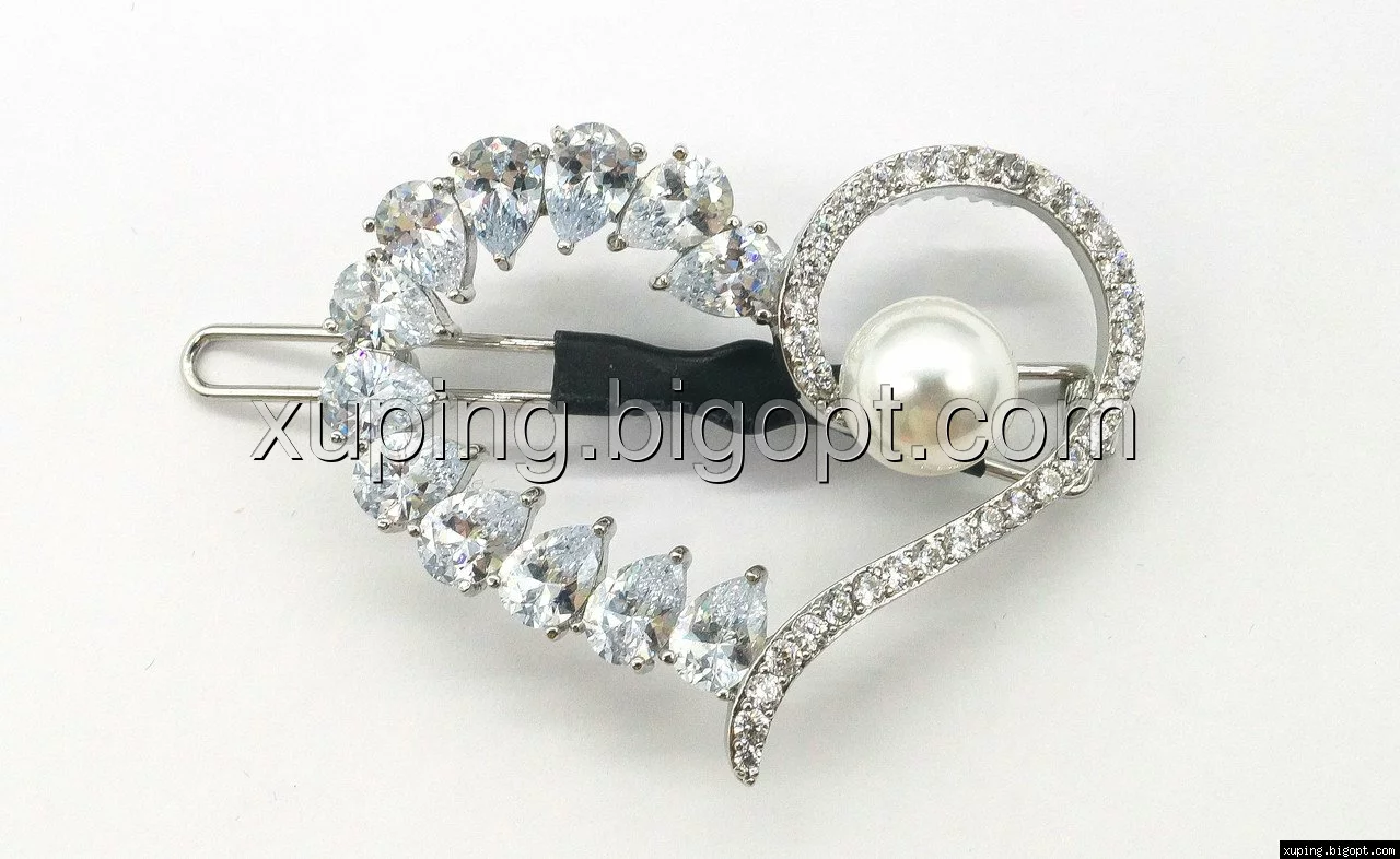 Заколка родированная, Большое Сердце с Жемчужиной