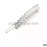 Заколка выполнена из медицинского сплава на основе титана с добавлением легирующих елементов, с целью улучшения каких-либо ее свойств, например коррозионной стойкости или прочности. Такой сплав не вызывает аллергии, не вступает в реакцию с потом человека, не меняет свои свойства под воздействием соленой воды и солнца. Поверхность заколки покрыта родием чтобы придать ей ярко-белый цвет и дополнительно защитить от повреждений .