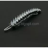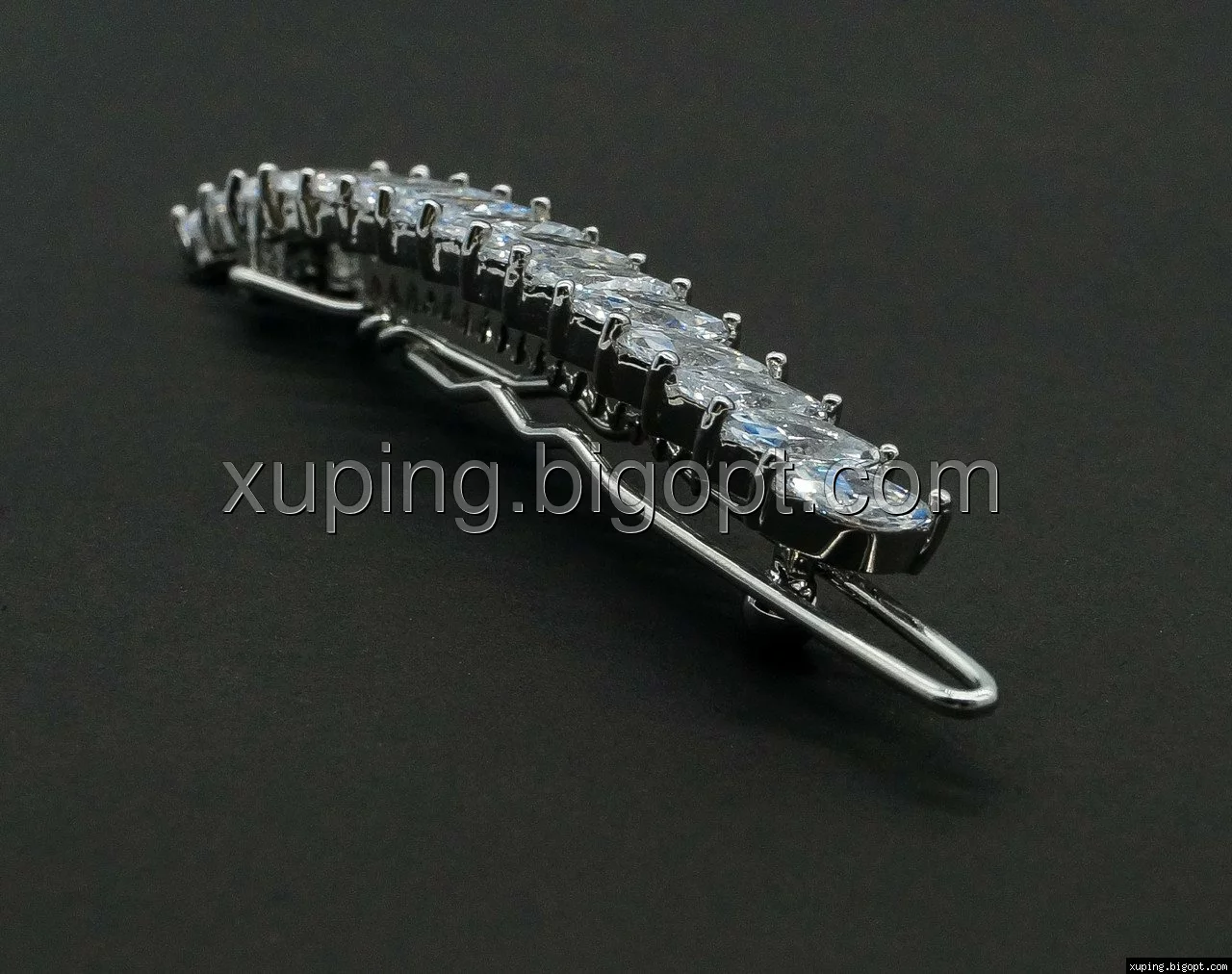 Заколка выполнена из медицинского сплава на основе титана с добавлением легирующих елементов, с целью улучшения каких-либо ее свойств, например коррозионной стойкости или прочности. Такой сплав не вызывает аллергии, не вступает в реакцию с потом человека, не меняет свои свойства под воздействием соленой воды и солнца. Поверхность заколки покрыта родием чтобы придать ей ярко-белый цвет и дополнительно защитить от повреждений .