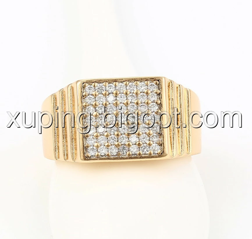 Колечко позолоченное, Печатка с россыпью циркония, р.19,5