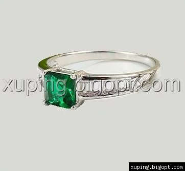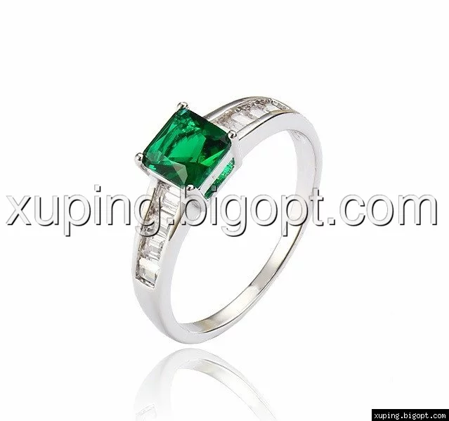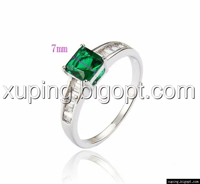 Колечко родированное с зеленым цирконием, р.16