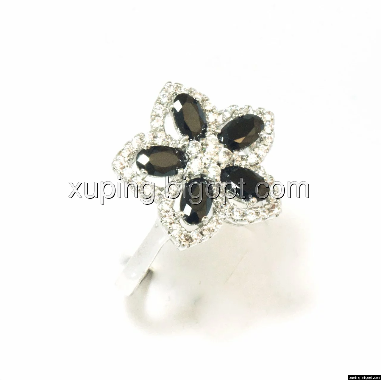 Колечко родій, Квіточка з чорним цирконієм, р.17,5, р.18, р.19