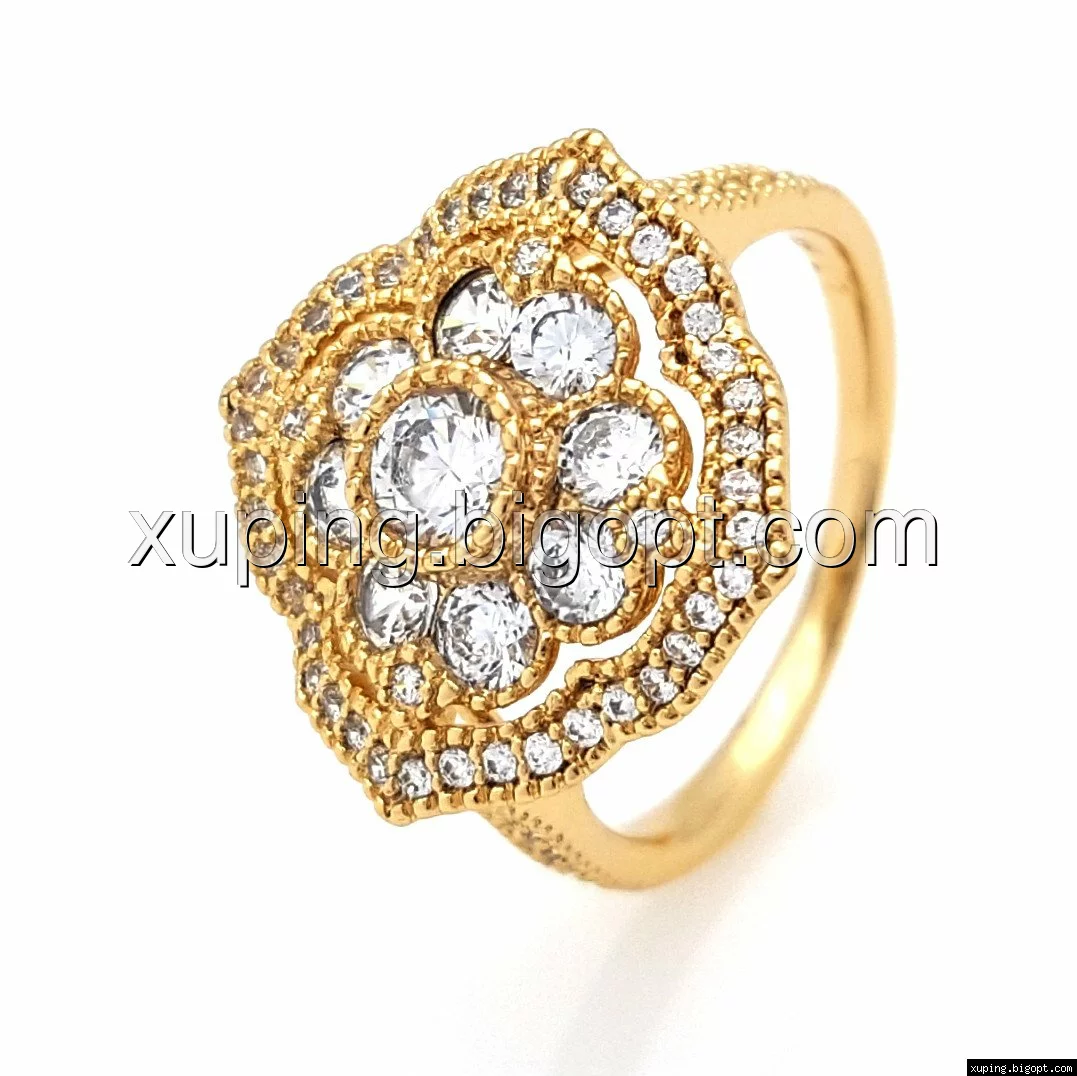Кольцо Ажурный Цветок, с цирконием, р.17, р.18, р.18,5, позолота Xuping
