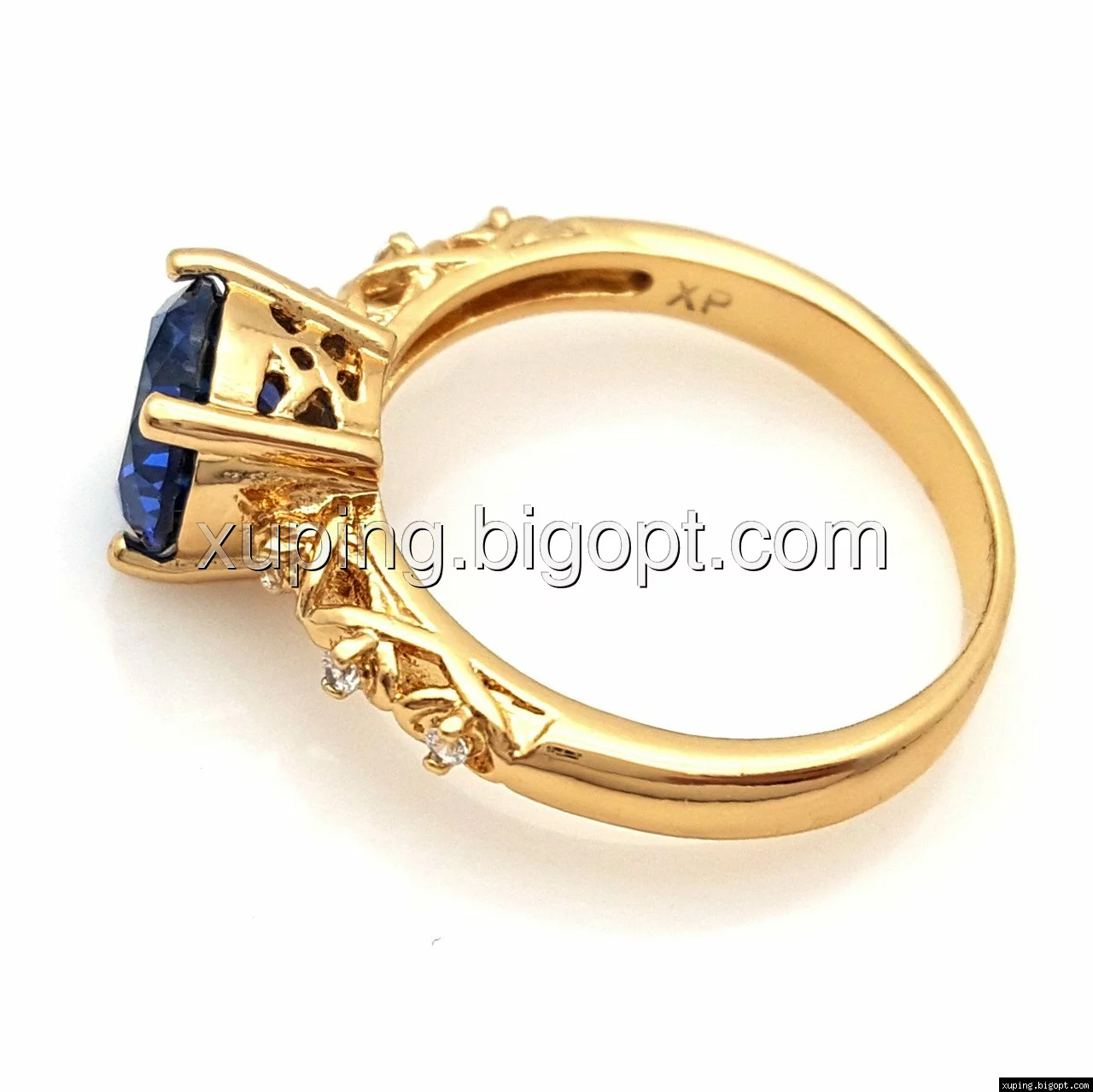 Кольцо Ажурное, с синим цирконием, р.16,5, р.17,5, р.18, р.18,5 р.19,5, позолота Xuping