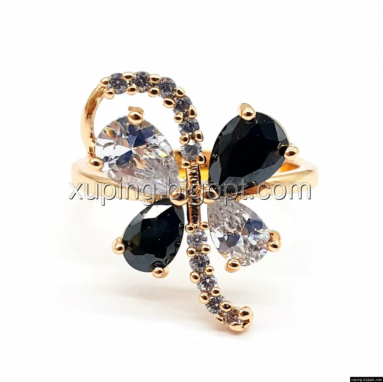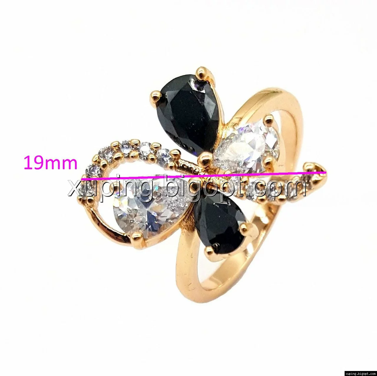 Кольцо Бабочка, с черно-белым цирконием, р.19 позолота