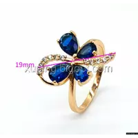 Кольцо Бабочка, с синим, цирконием, р.17, р.19, позолота