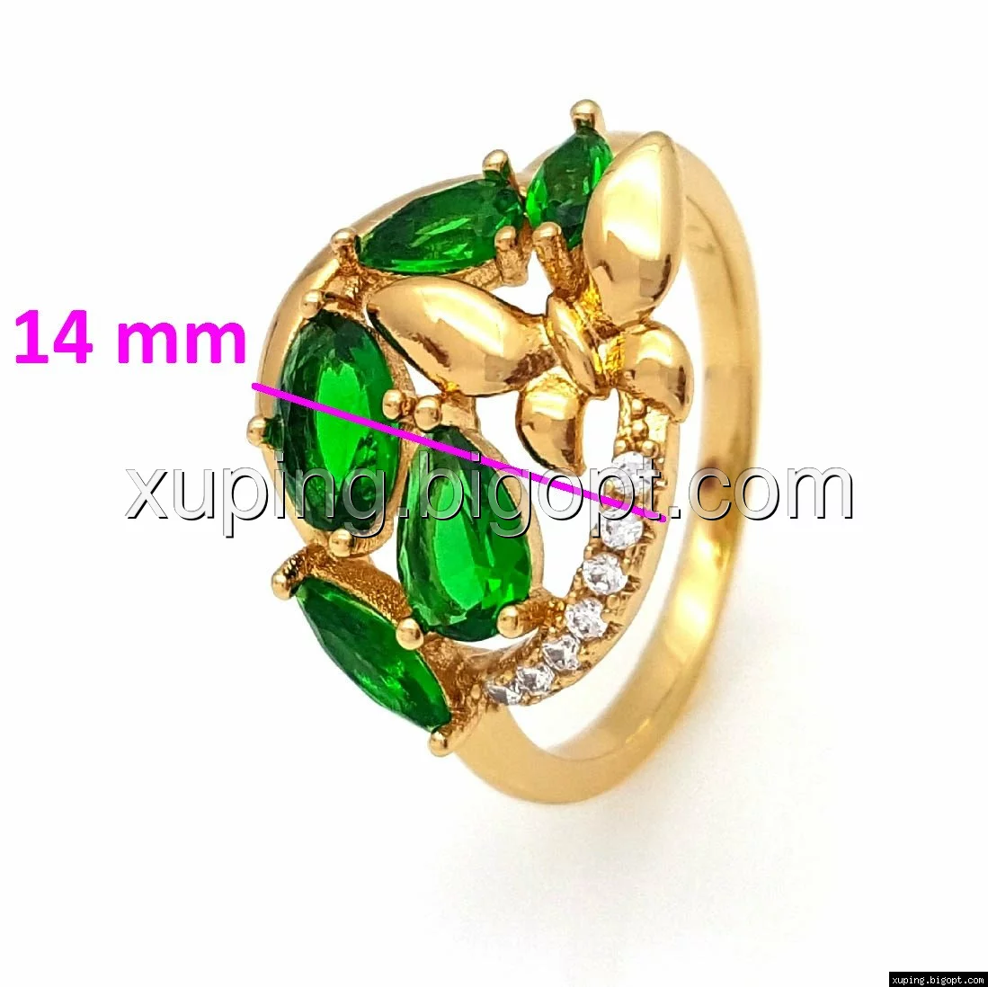 Кольцо Бабочка, с зеленым цирконием, р.17, р.18, р.19, р.19,5, позолота Xuping