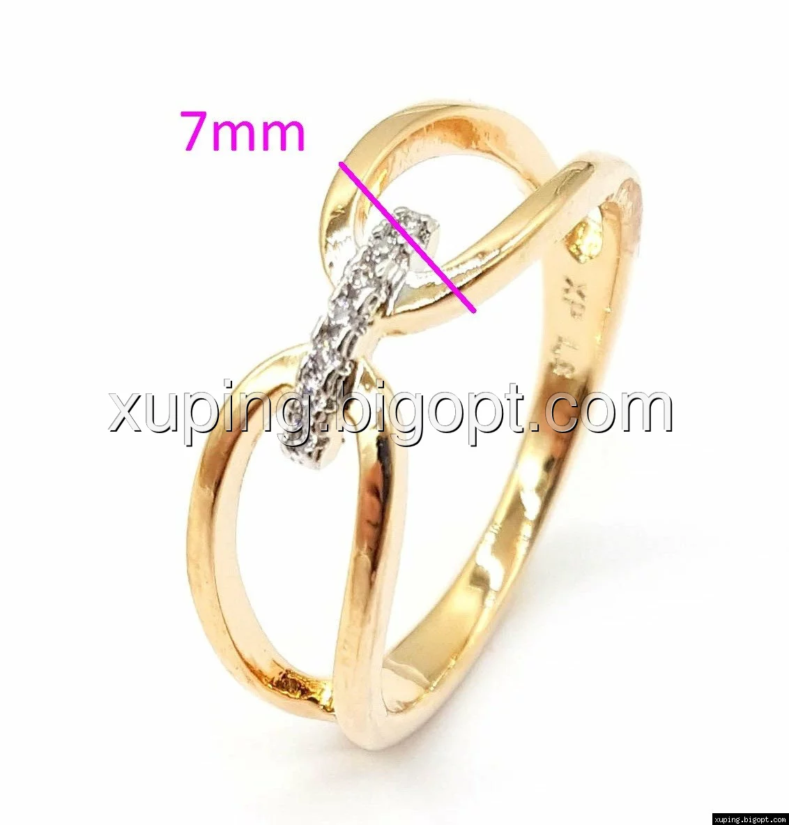 Кольцо Бантик, с цирконием, р.16, позолота+родий