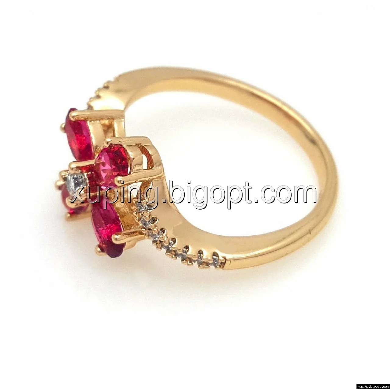Кольцо Четырехлистник с малиновым цирконием, р.17, р.18, р.18,5, р.19,5, позолота Xuping