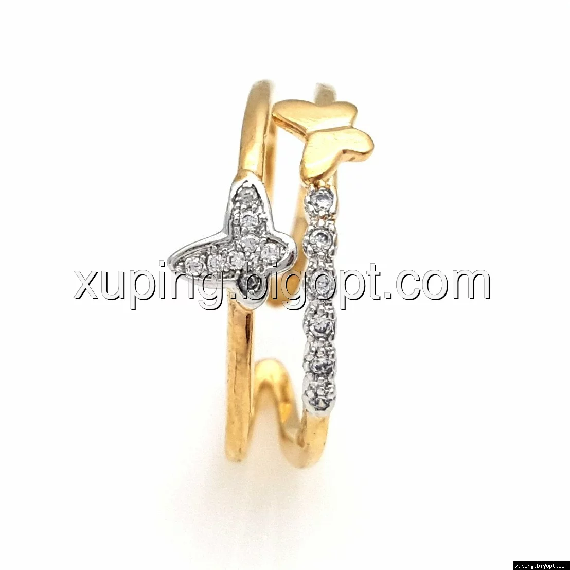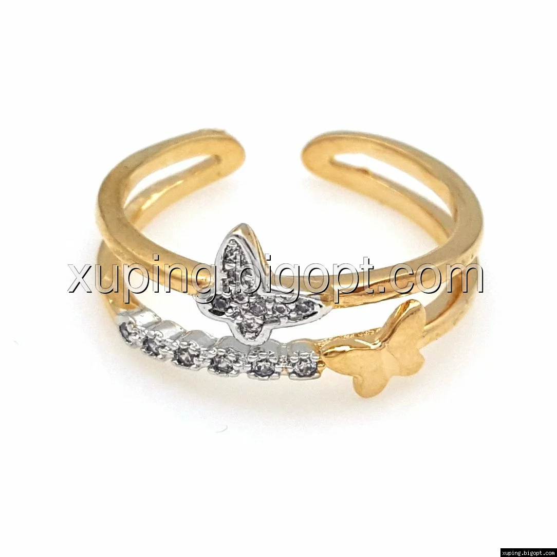 Кольцо Две Бабочки, с камнями, р.18-18,5, позолота+родий