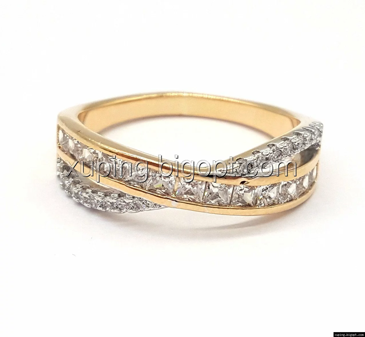 Кольцо Две Дорожки, с кубичным цирконием, р.18, позолота+родий