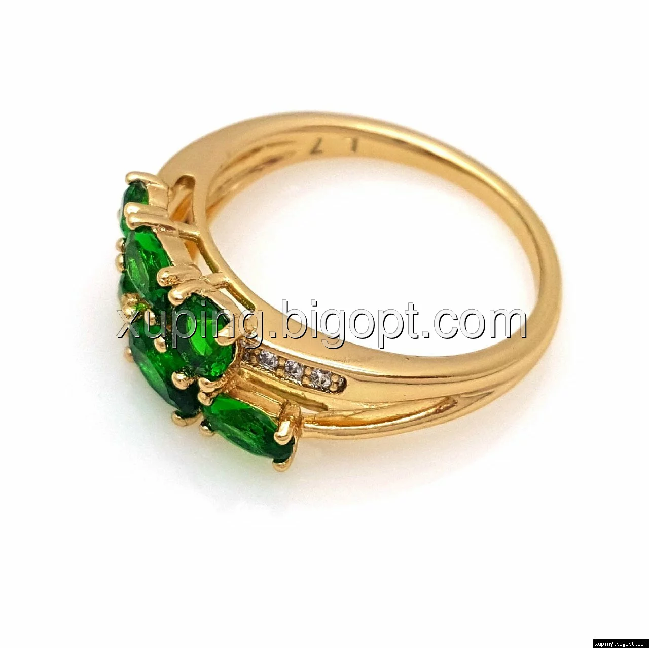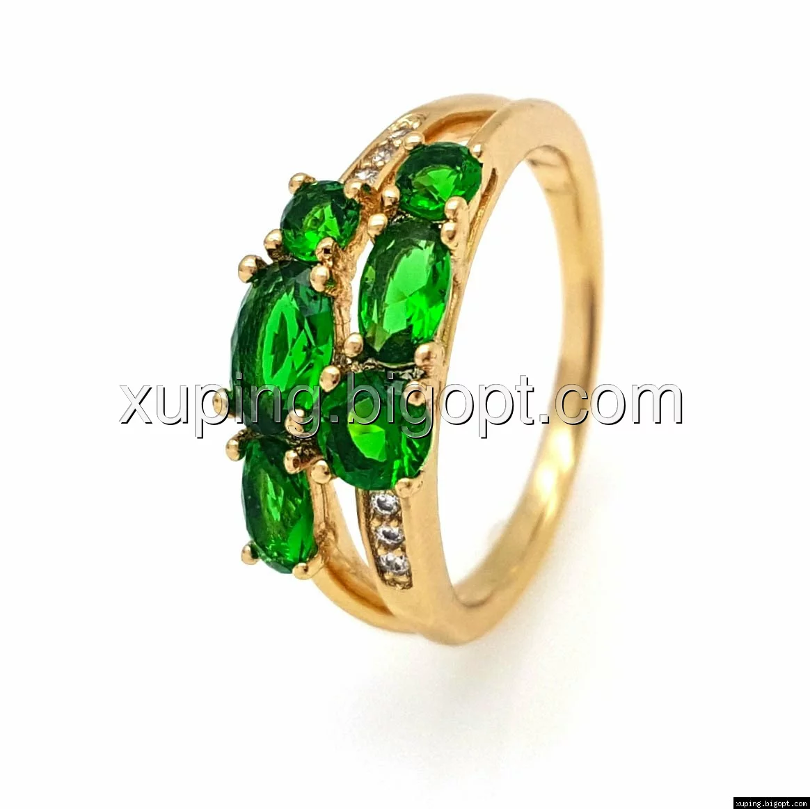 Кольцо Две Дорожки с зеленым цирконием, р.17, р.17,5 ,р.18,5, р.19,5, позолота Xuping