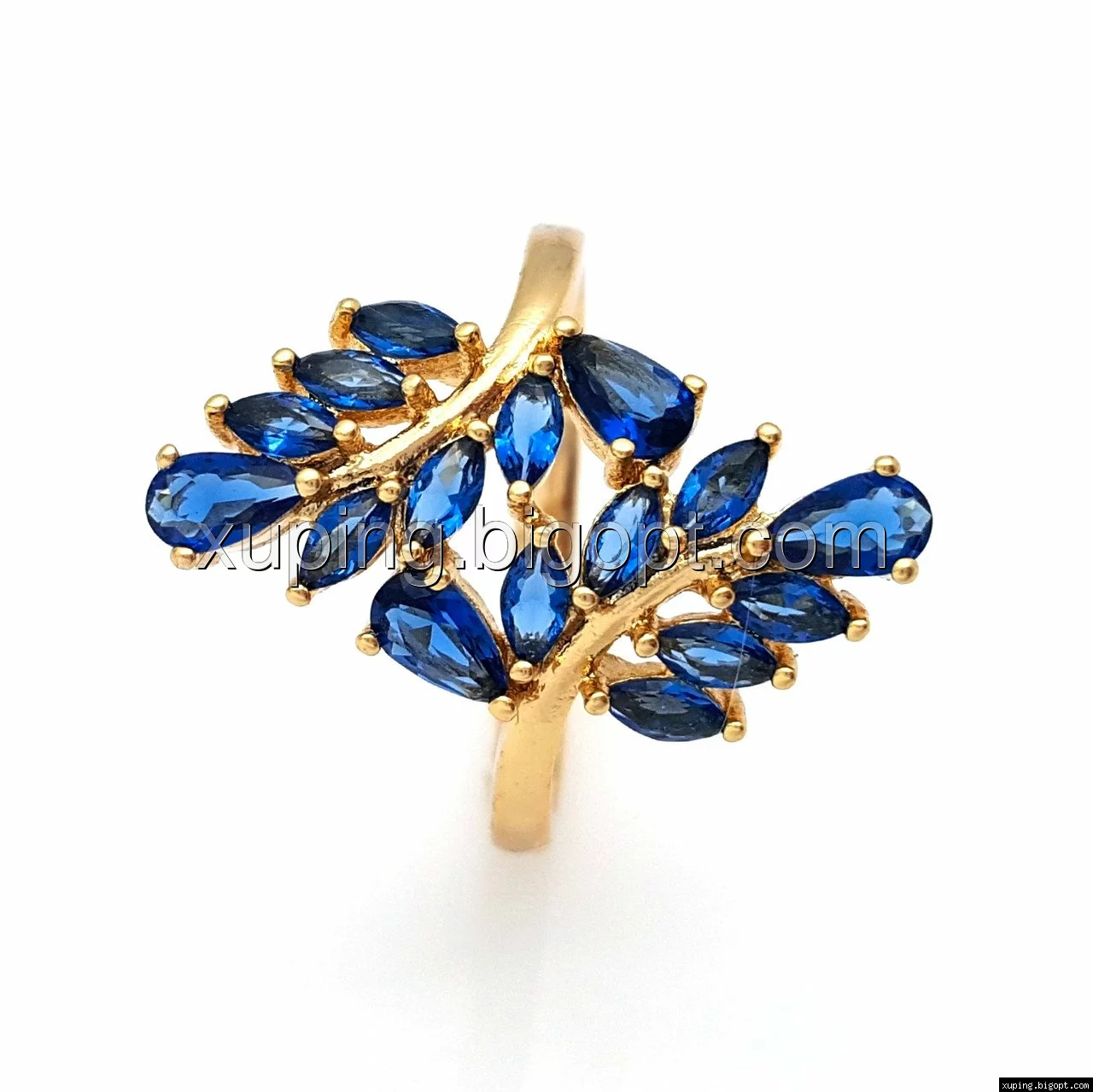 Кольцо Две Веточки с синим цирконием, р18, позолота