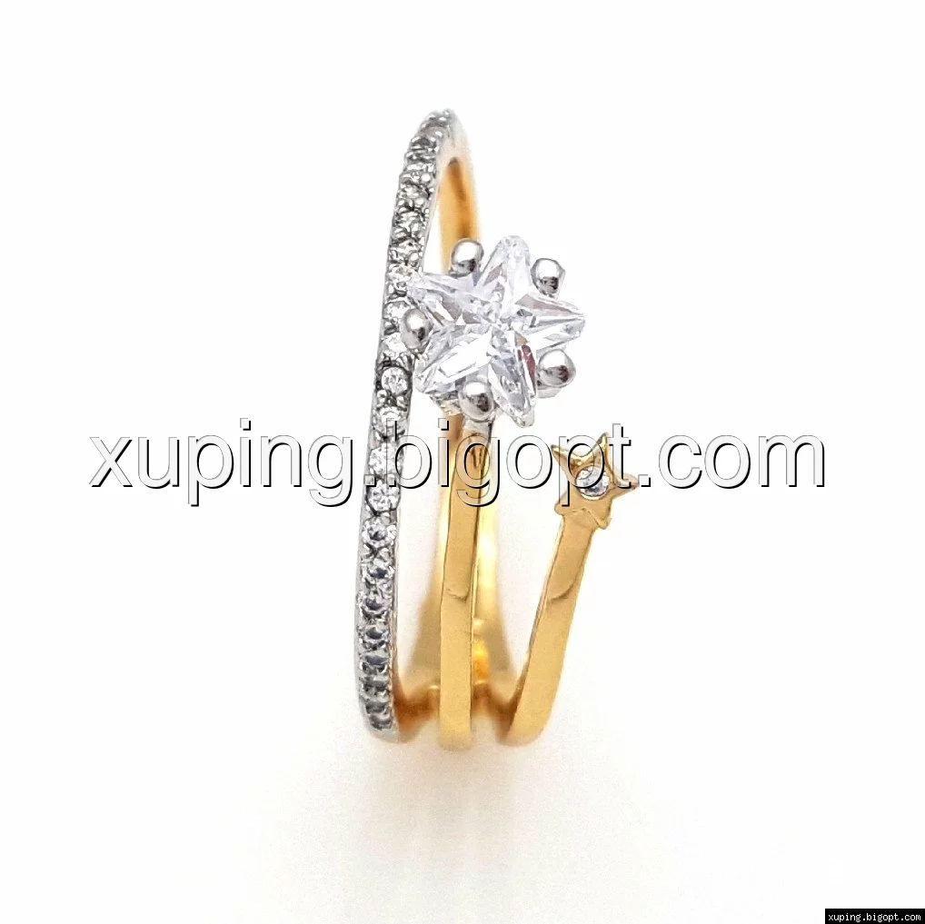 Кольцо Две Звезды, с цирконием, р.16,5, р.17, р.18, позолота+родий