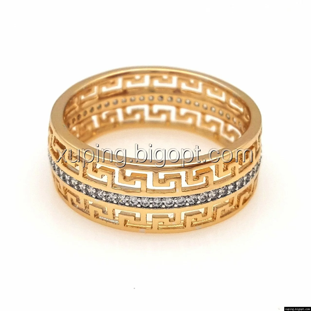 Кольцо Греческий узор, с дорожкой циркония, р.17, позолота