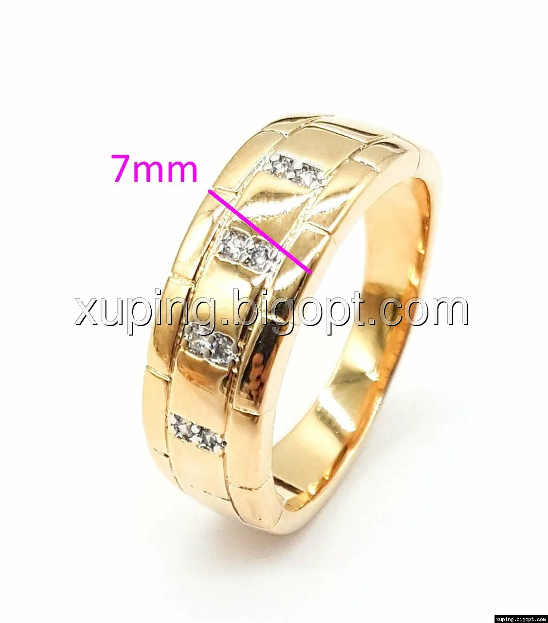 Кольцо выполнено из медицинского сплава на основе латуни с добавлением легирующих елементов, с целью улучшения каких-либо его свойств, например коррозионной стойкости или прочности. Такой сплав не вызывает аллергии, не вступает в реакцию с потом человека, не меняет свои свойства под воздействием соленой воды и солнца. Поверхность колечка покрыта золотом 18 карата.