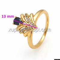 Кольцо Корона, с черным цирконием, р.17, р.18, р.18,5, позолота