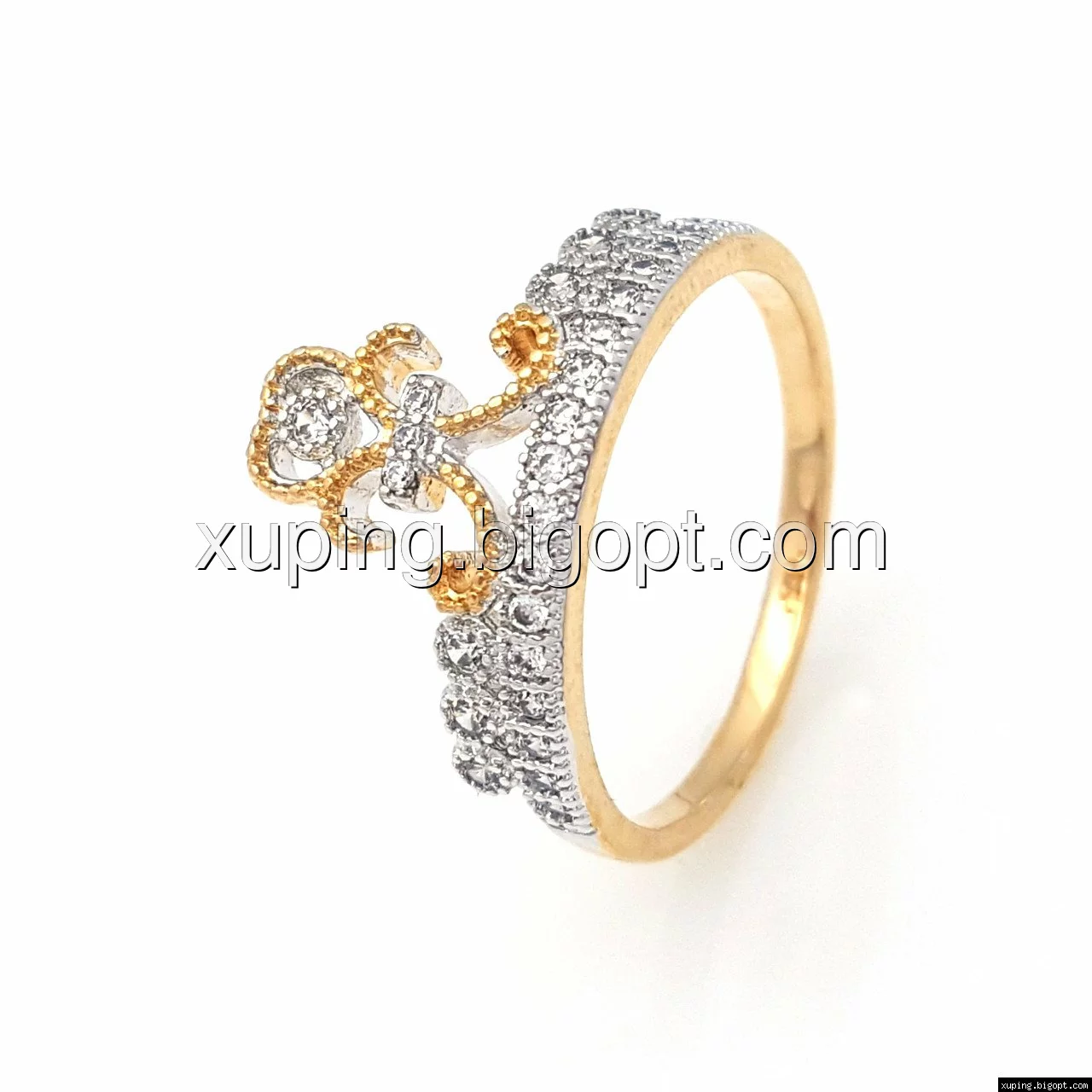 Кольцо Корона с россыпью циркония, р.17, р.18, р.19, позолота+родий