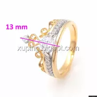 Кольцо Корона с цирконием, р.16, р.17, р.18, р.18,5, р.19,5 позолота+родий