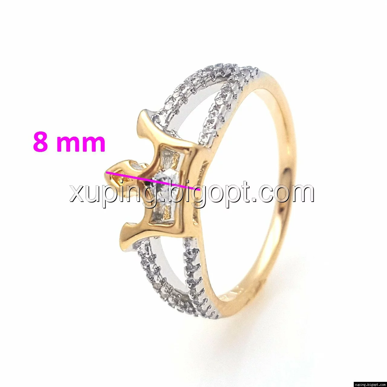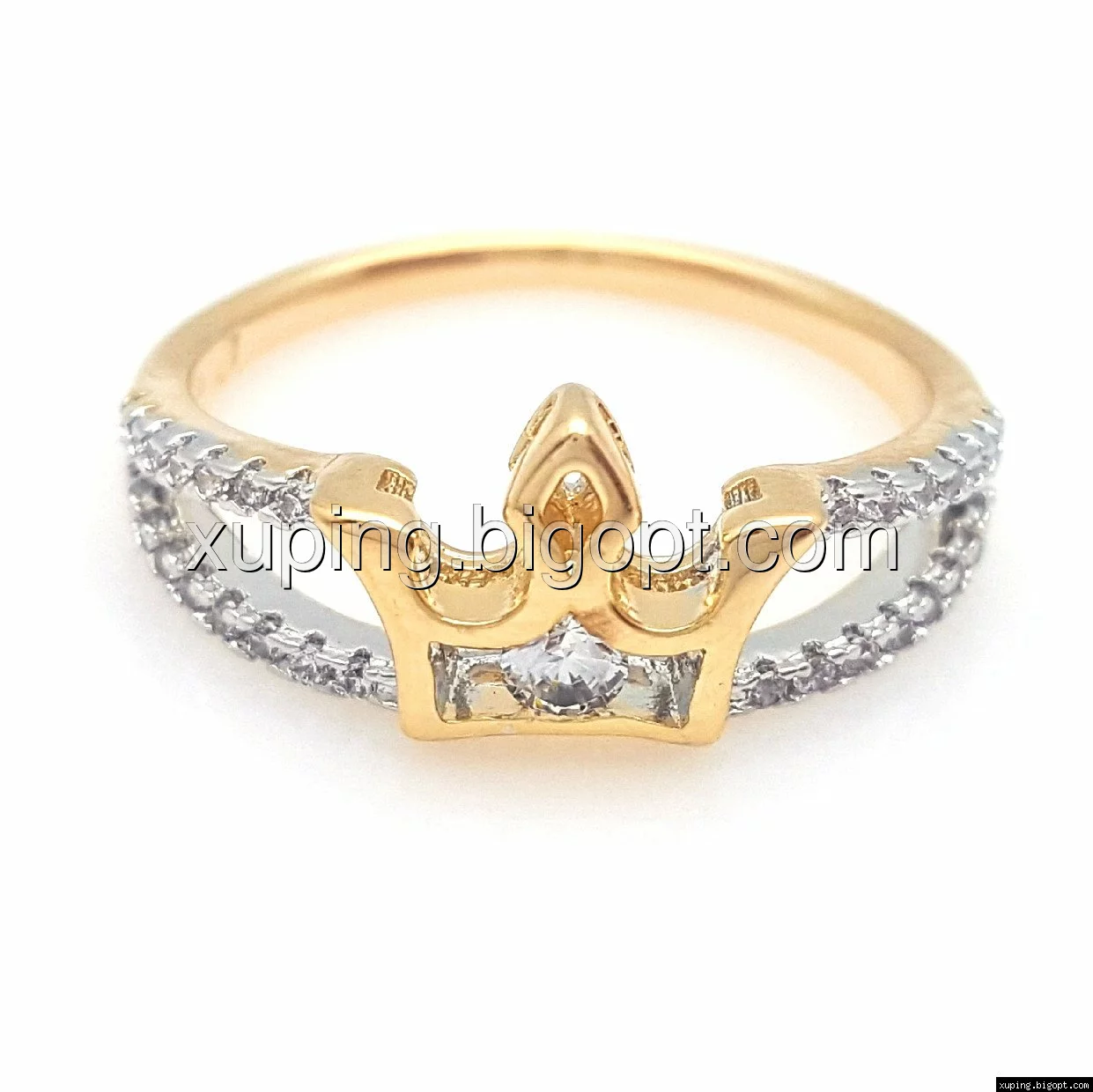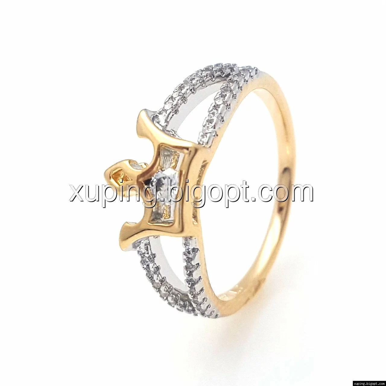 Кольцо Корона с цирконием, р.17, 18 позолота+родий