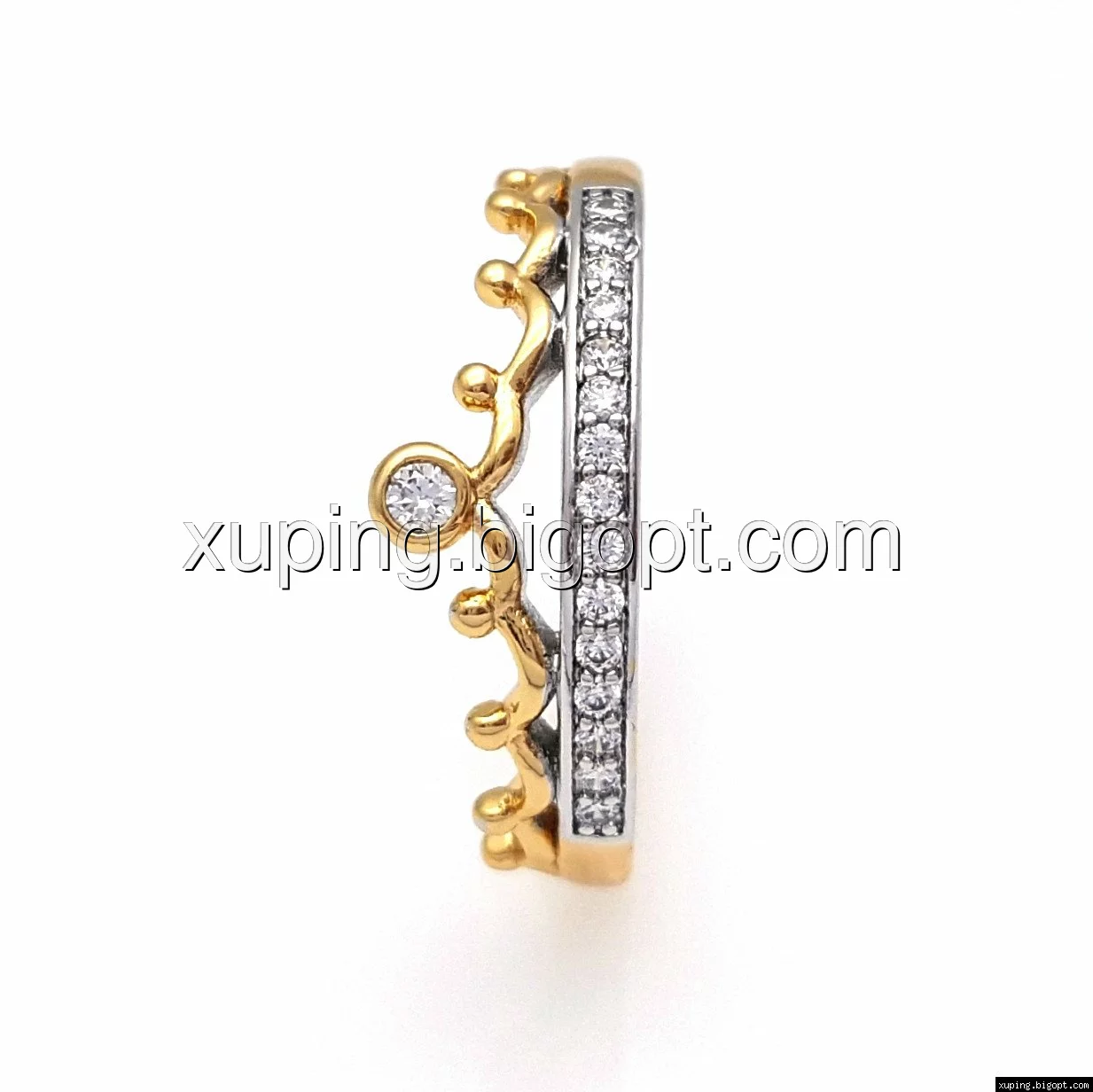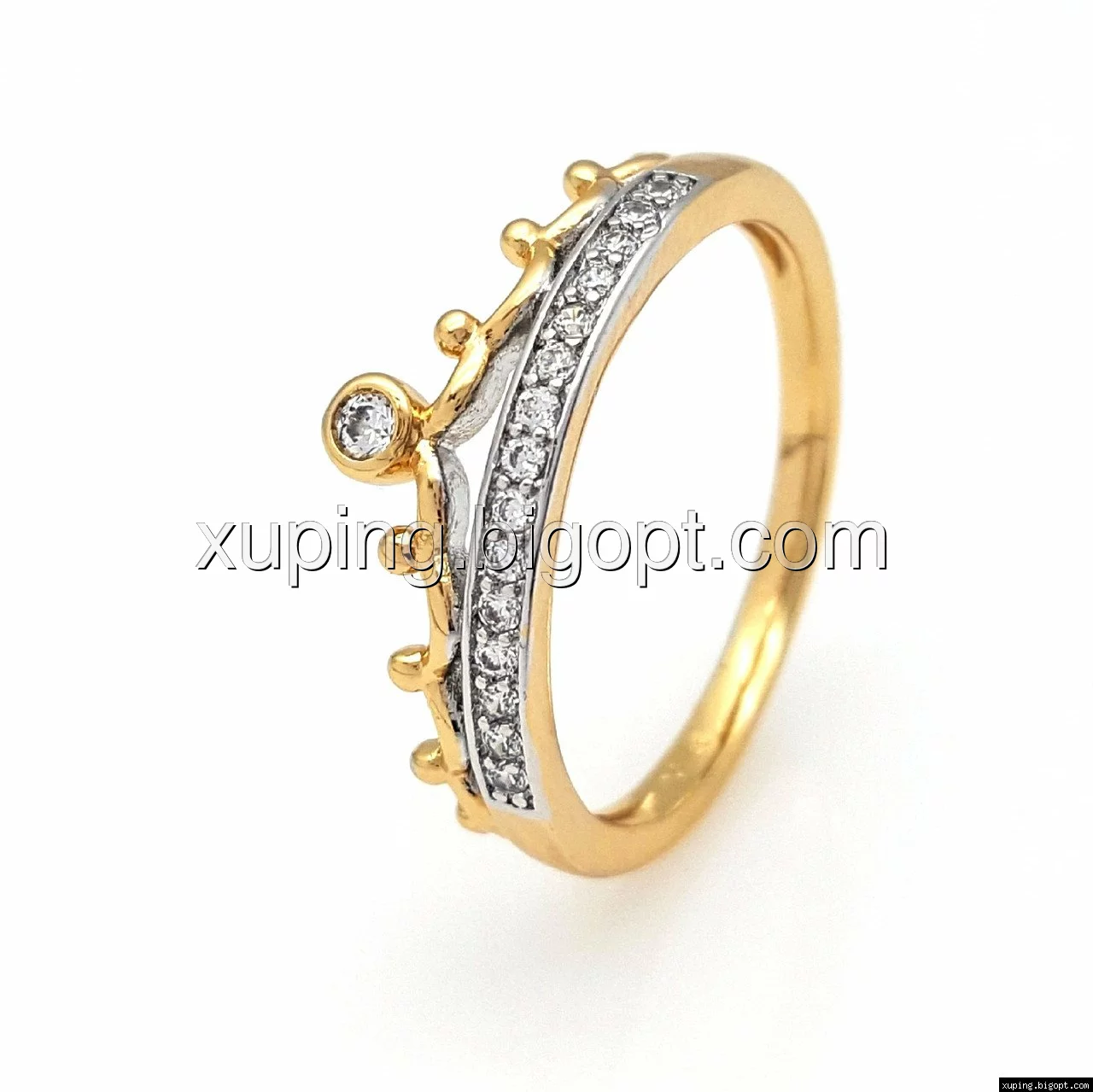 Кольцо Корона, с цирконием р.17, р.18, р.19, р.19,5, позолота+родий