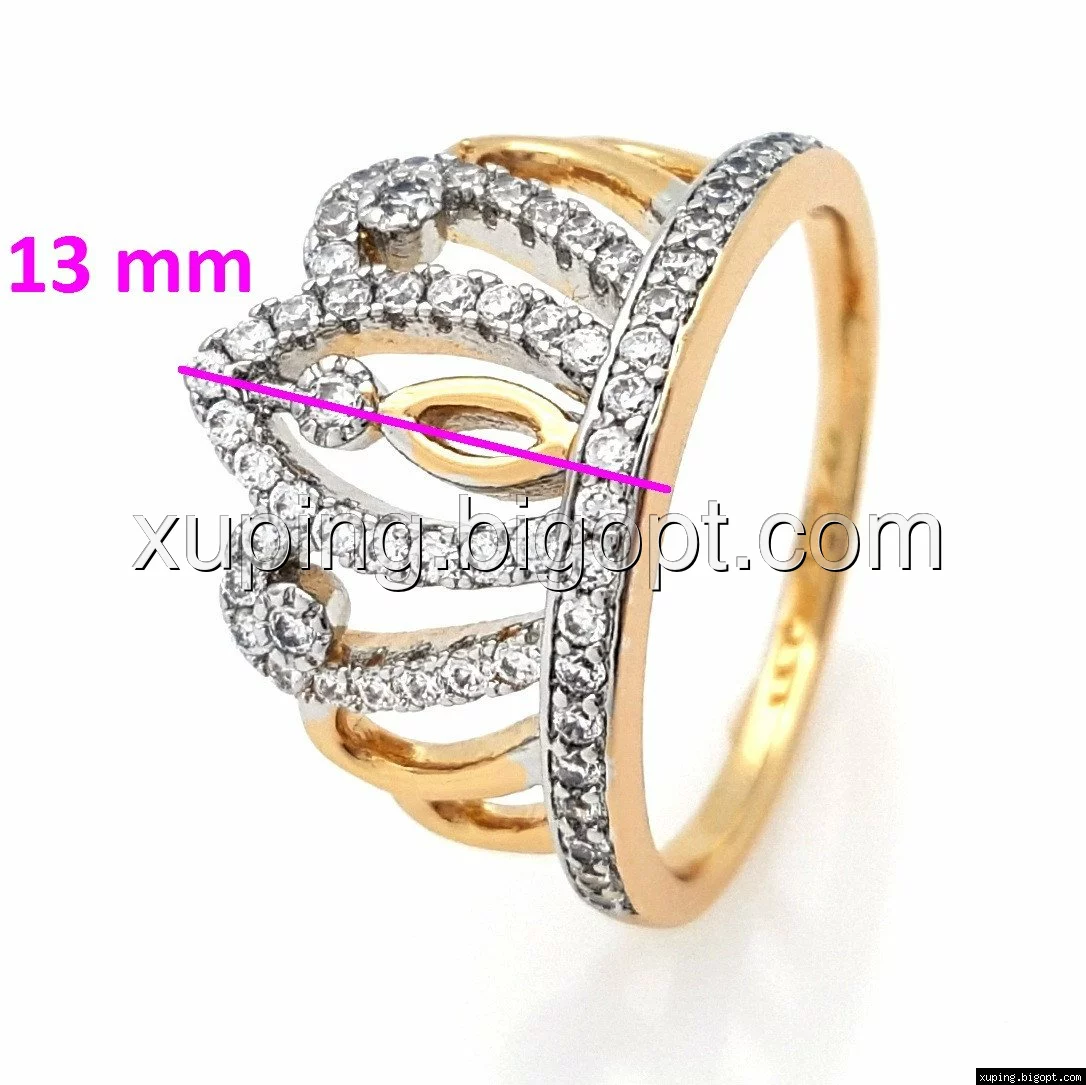 Кольцо Корона, с цирконием, р.18, р.19, р.19,5, позолота+родий