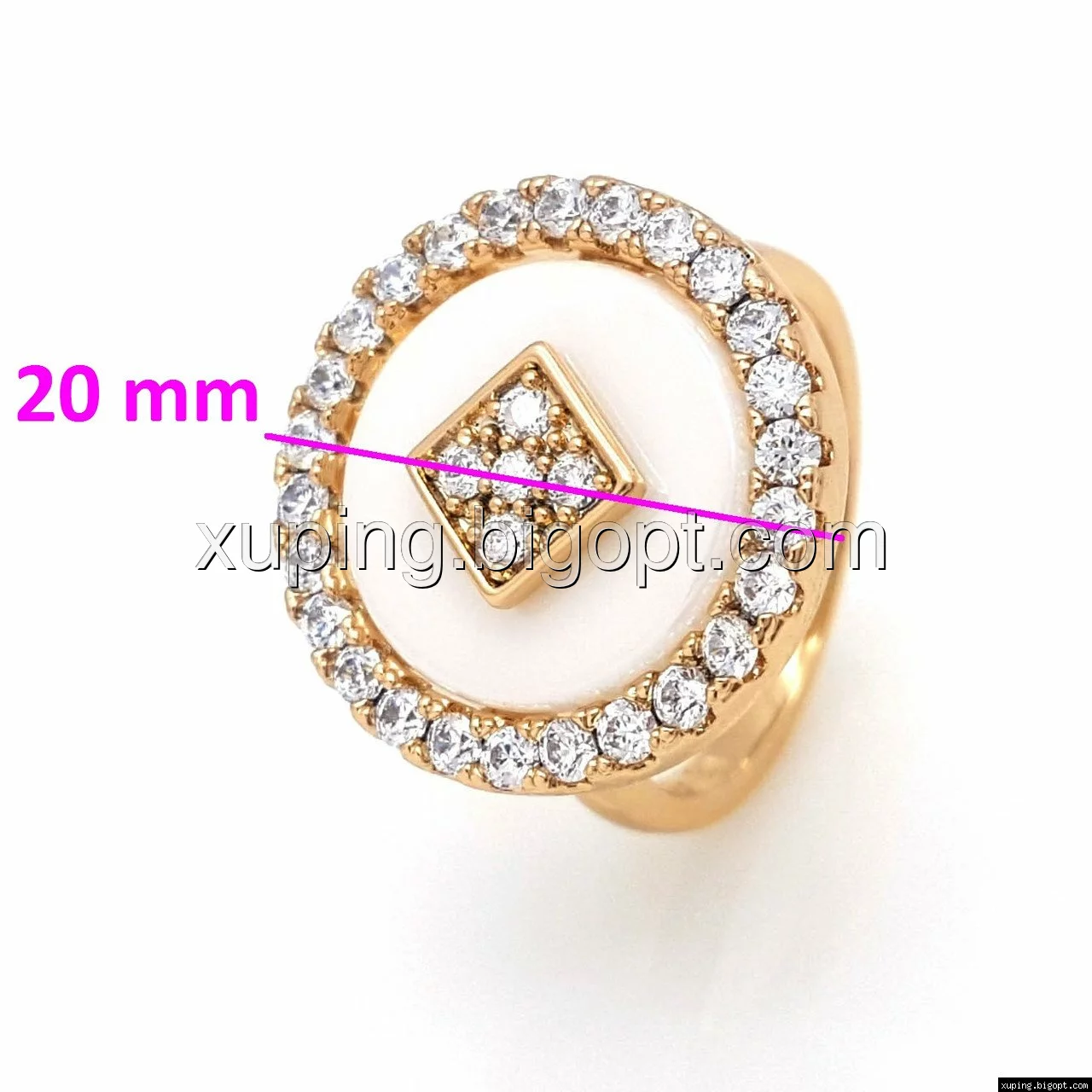 Кольцо Круг, Белая керамика и россыпь камней циркония, р.18, р.19, р.19,5, позолота Xuping