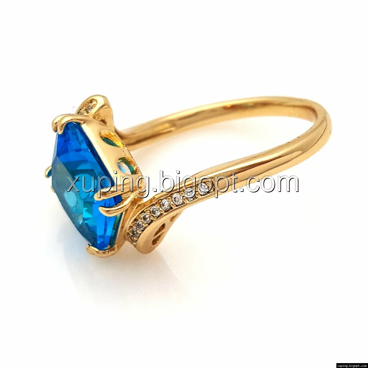 Кольцо Квадрат, с голубым цирконием, р.17, позолота Xuping