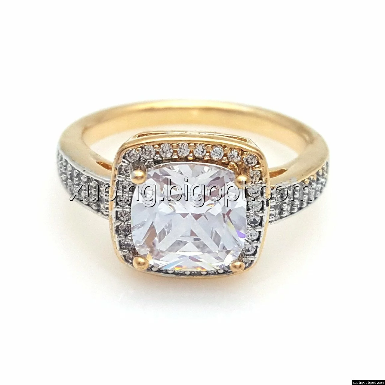 Кольцо Квадрат, с россыпью камней, р.18, р.19,5, позолота+родий