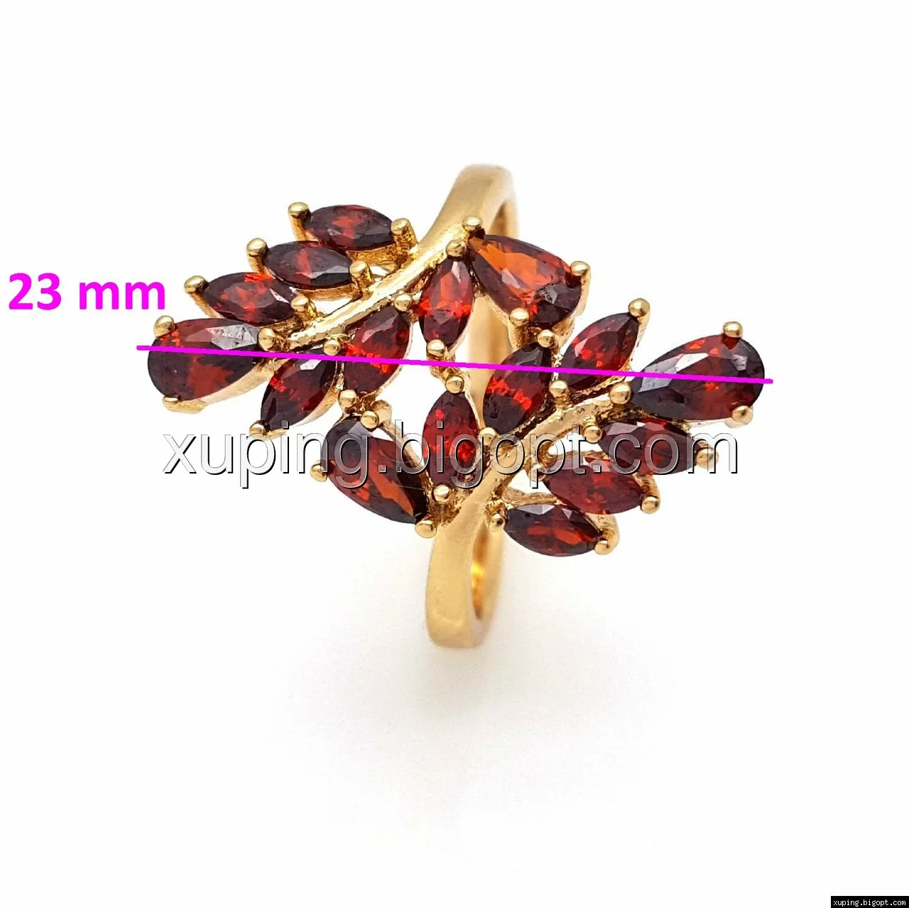 Кольцо Пальмовая Веточка с красным цирконием, р.17, р.18, позолота Xuping