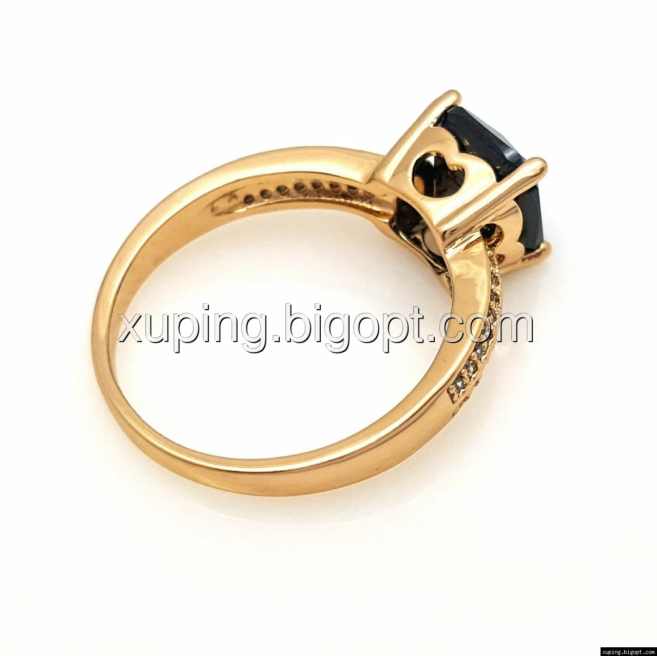 Кольцо позолоченное, Черный Кубичный цирконий, р.17, р.18, Xuping