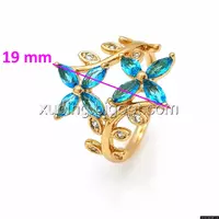 Кольцо позолоченное, Два Цветка с бирюзовым цирконием, р.17, р.18, р.18,5, р.19,5