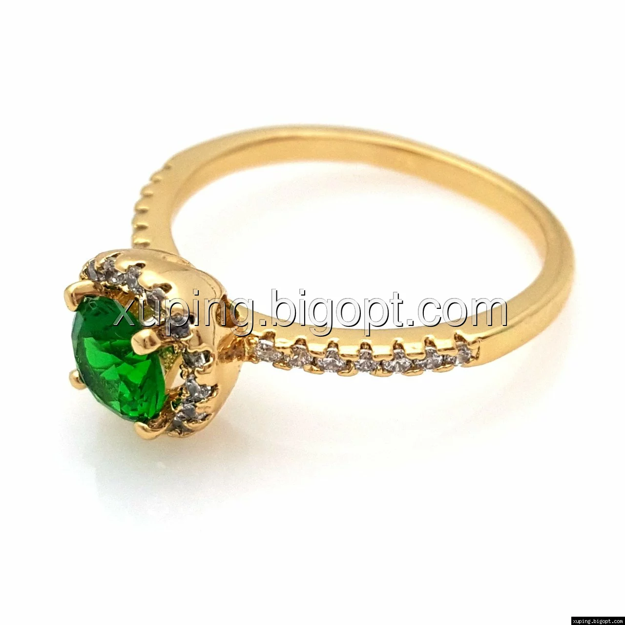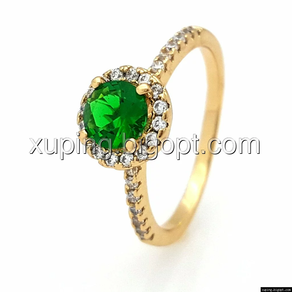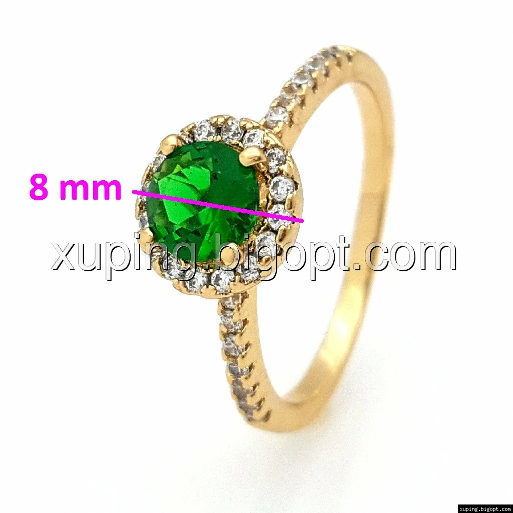 Кольцо позолоченное, Классика с зеленым цирконием, р.17, р.18, р.19, р.19,5